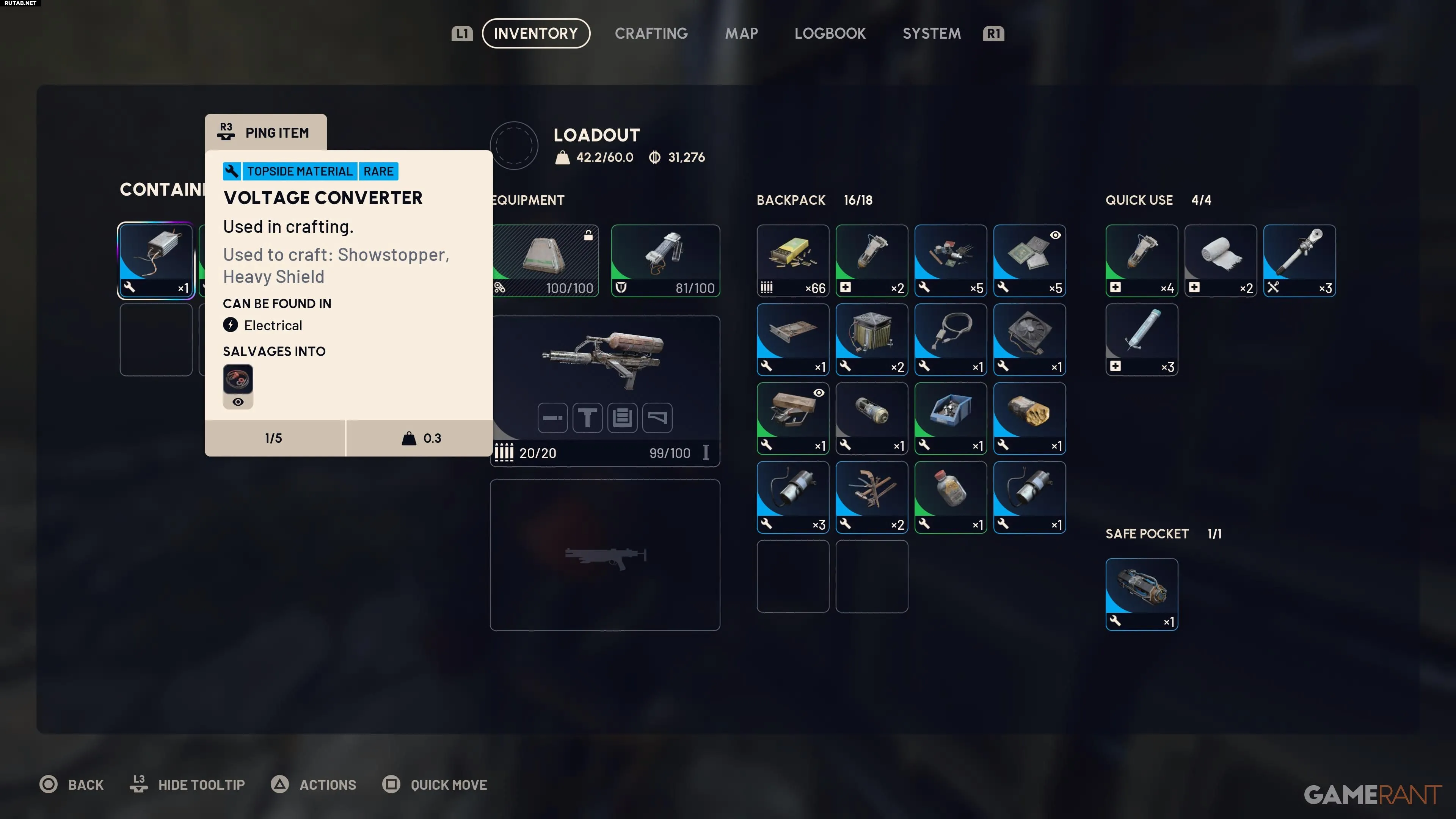 В этом случае ваша цель — сдаться, если появились далеко, или обыскать зону, если появились рядом. Поскольку у вас есть «Безопасный карман», вы можете положить преобразователи туда и не беспокоиться об их потере.