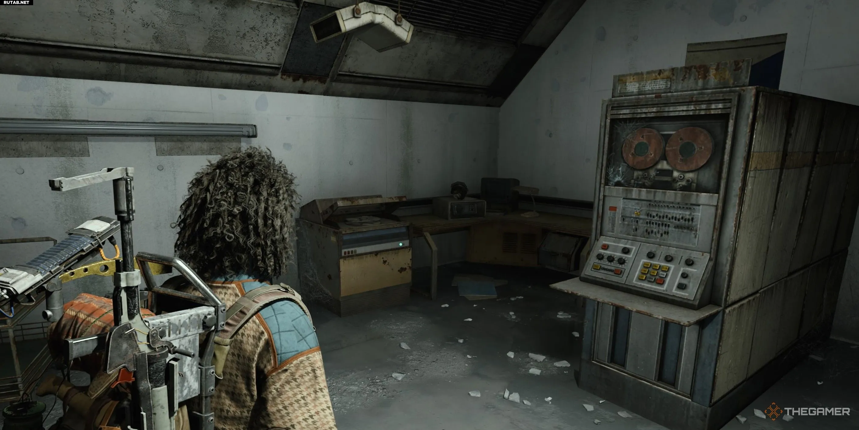 Взаимодействуйте с клавиатурой на столе, над которым висит множество мониторов, чтобы попытаться распечатать карту. Когда система сломается, вам снова придётся спуститься в боковую комнату на третьем этаже.