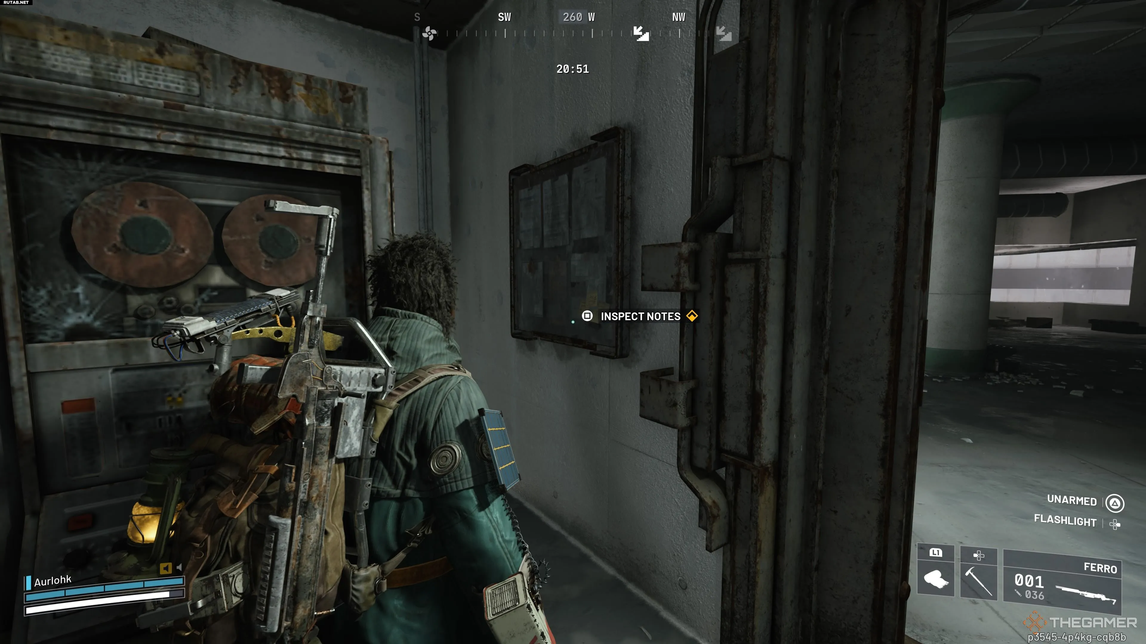 В этой комнате найдите белую доску на стене между дверью и большой машиной, занимающей большую часть помещения. Взаимодействуйте с ней, чтобы получить комбинацию для сейфа. Затем откройте сейф и заберите чертёж проекта «Хартвуд».