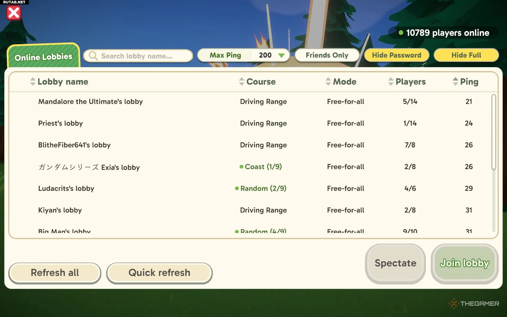 Также можно присоединиться к другу, вместо того чтобы создавать лобби самому. Для этого в главном меню выберите «Join», чтобы открыть браузер лобби. Если ваш друг уже создал комнату, вы найдете ее в списке и сможете зайти напрямую.