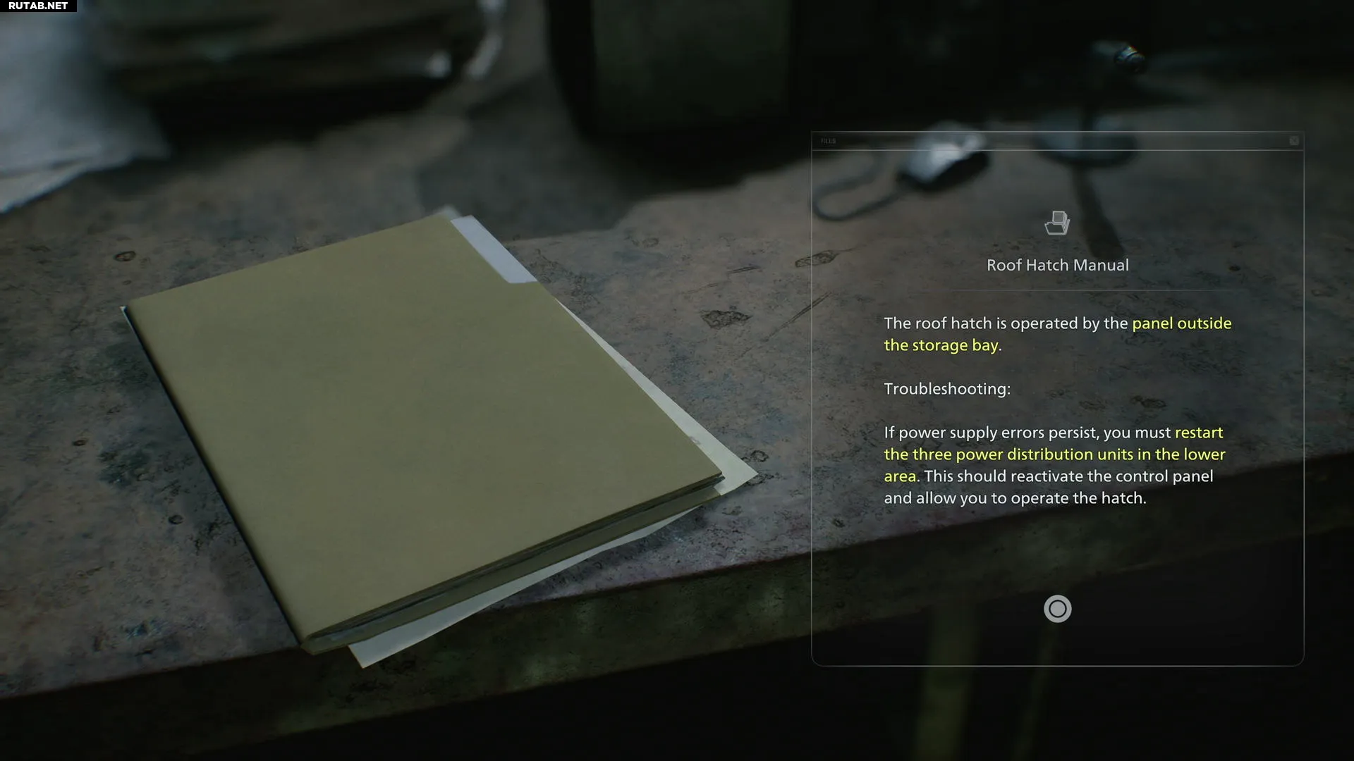 Когда вы впервые попадете в Зону хранения на Водоочистной станции, вы найдете рядом с печатной машинкой «Инструкцию к люку на крыше».