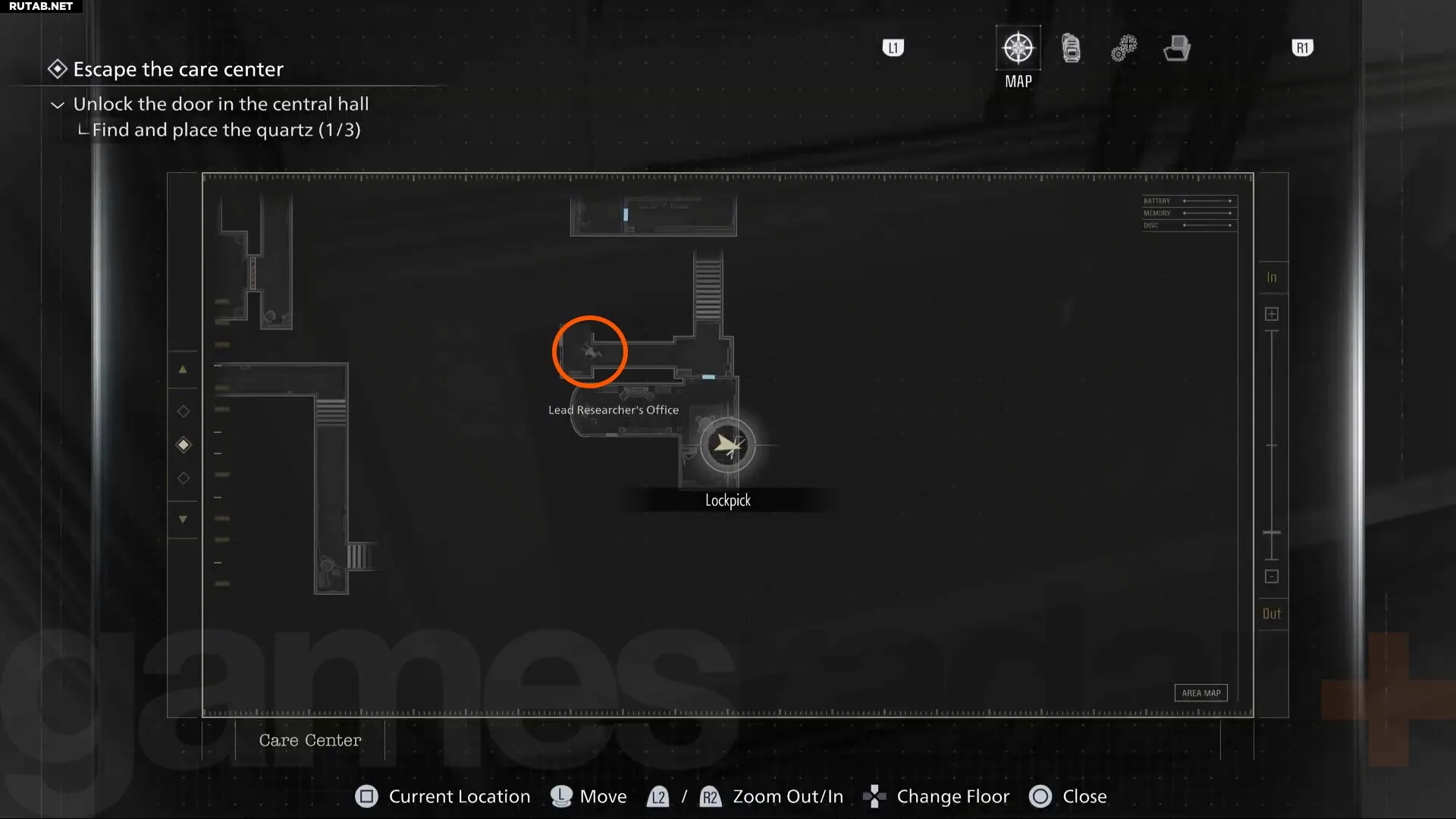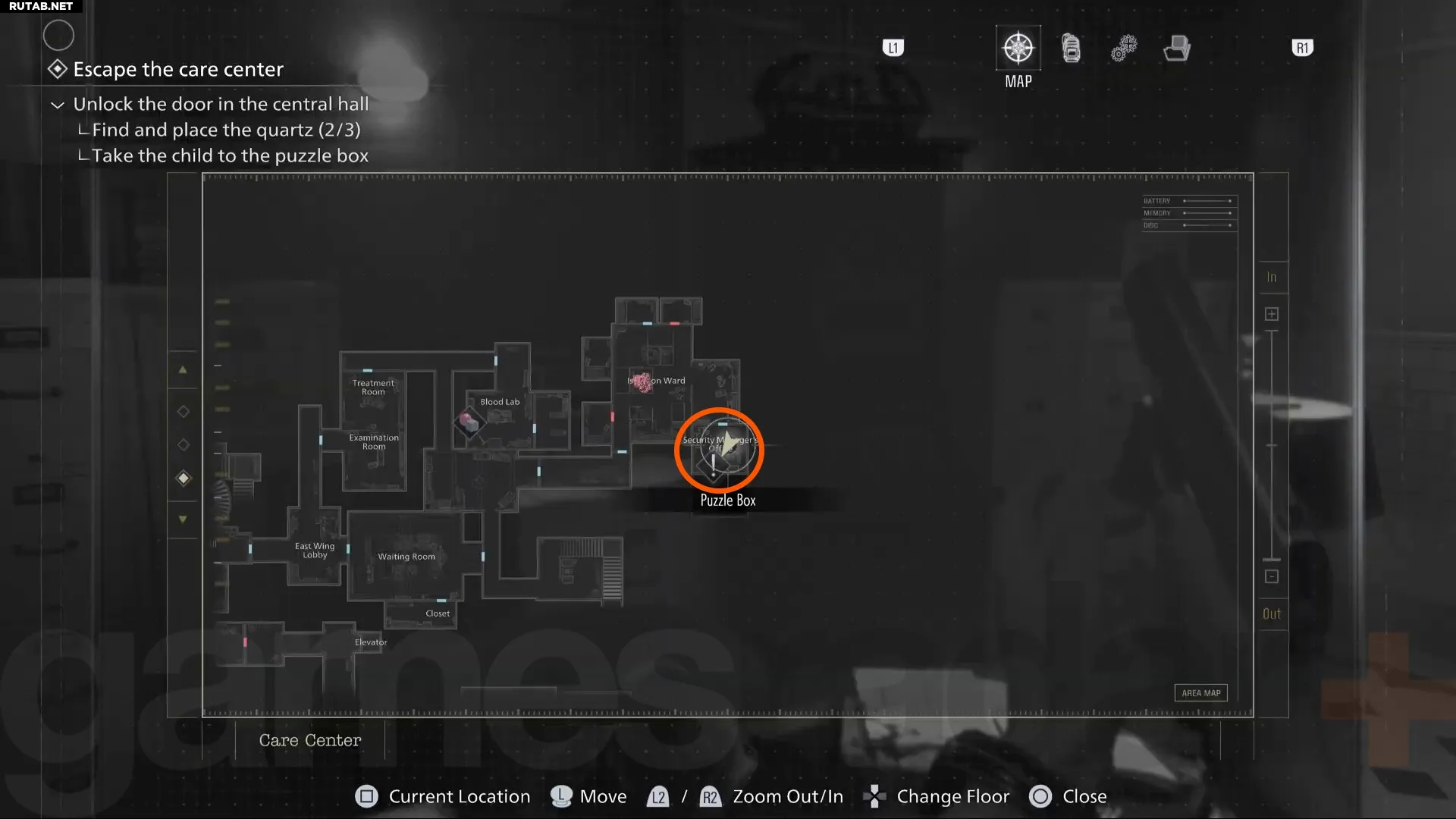 К счастью, кабинет главного исследователя также является точкой сохранения, поэтому перед тем, как идти дальше, стоит зайти внутрь. Там же вы найдете одну из головоломок-коробок.
