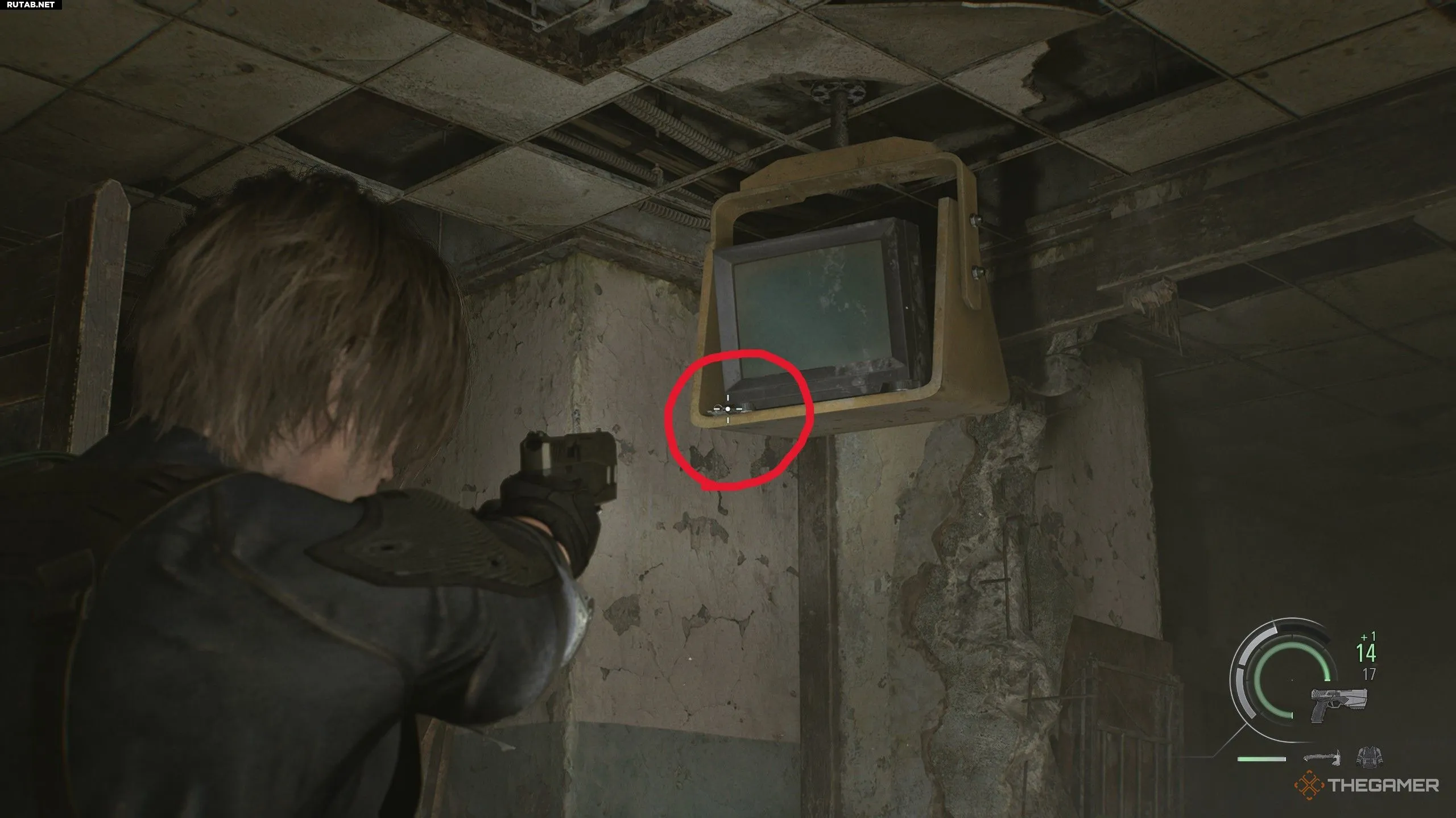 Выйдите из офиса S.T.A.R.S. в коридор и спуститесь по лестнице на первый этаж. Пройдите в дверь за лестницей в холл и поверните направо. Там зомби будет стучать по торговому автомату — устраните его топором.