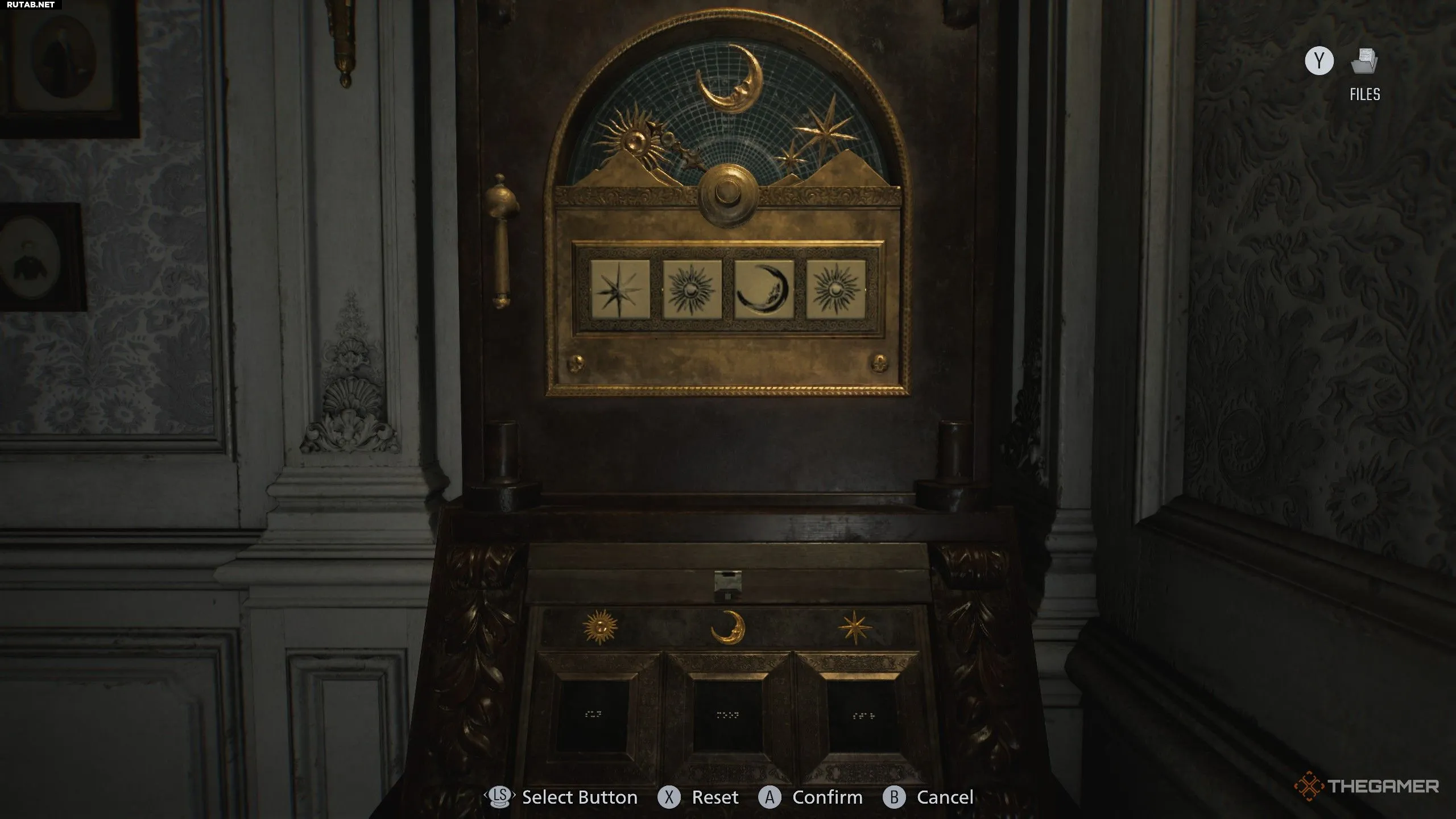 Теперь вы увидите три символа для выбора: Солнце, Луна и Звезда (слева направо). Нужно ввести последовательность из четырех символов. Подсказки находятся на фотографиях в этом же кабинете.