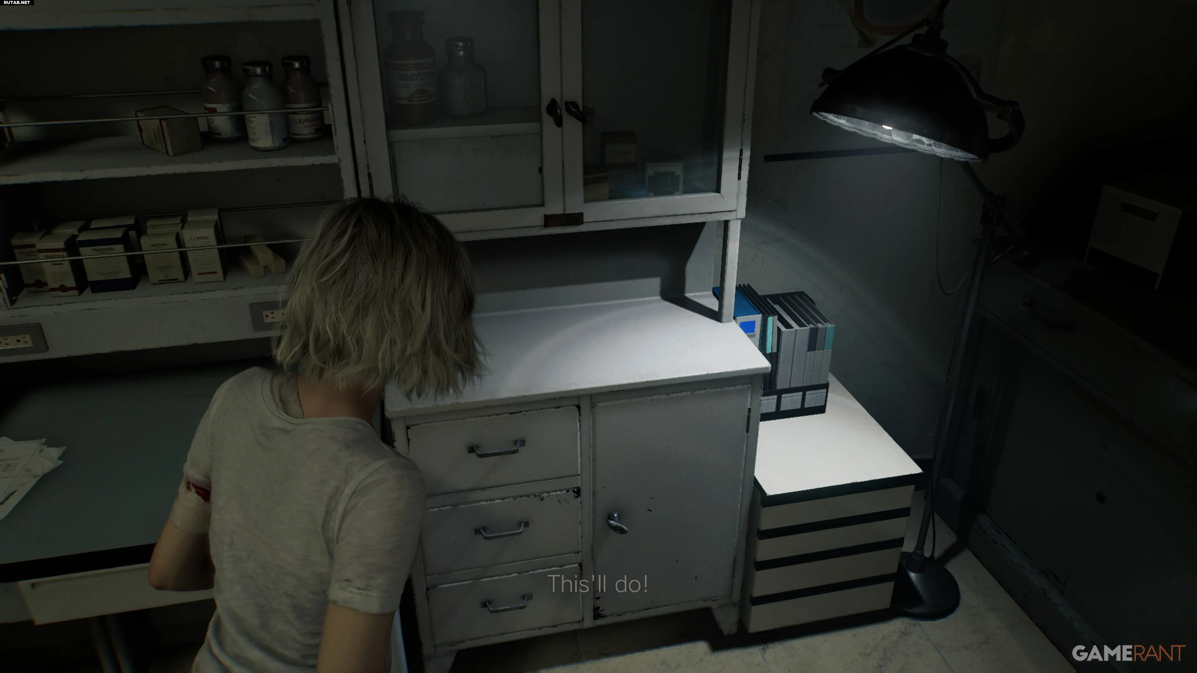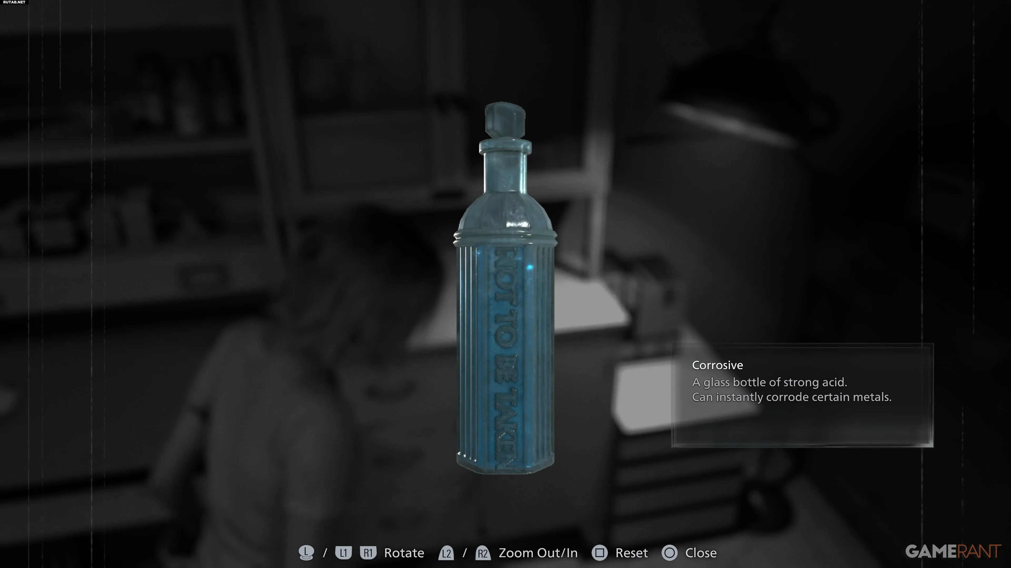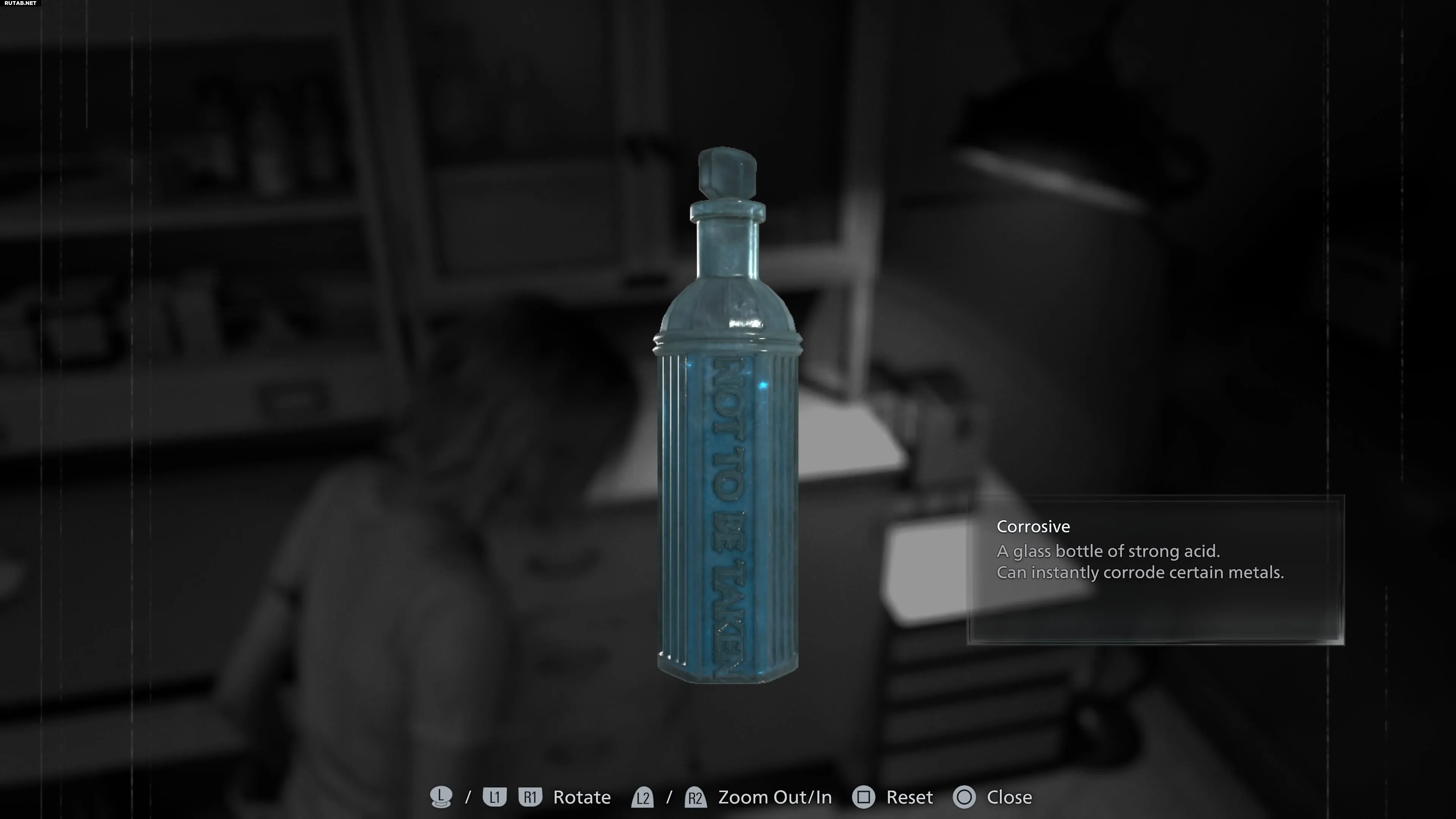 Оказавшись наверху в восточном крыле, пройдите в конференц-зал. В комнате будут около двух зомби и певица. В южной части конференц-зала, на шкафу у западной стены, вы найдете «Коррозив». Подняв его, вернитесь в кабинет главного исследователя, осмотрите прочный замок и выберите «Коррозив» в инвентаре, чтобы уничтожить его.
