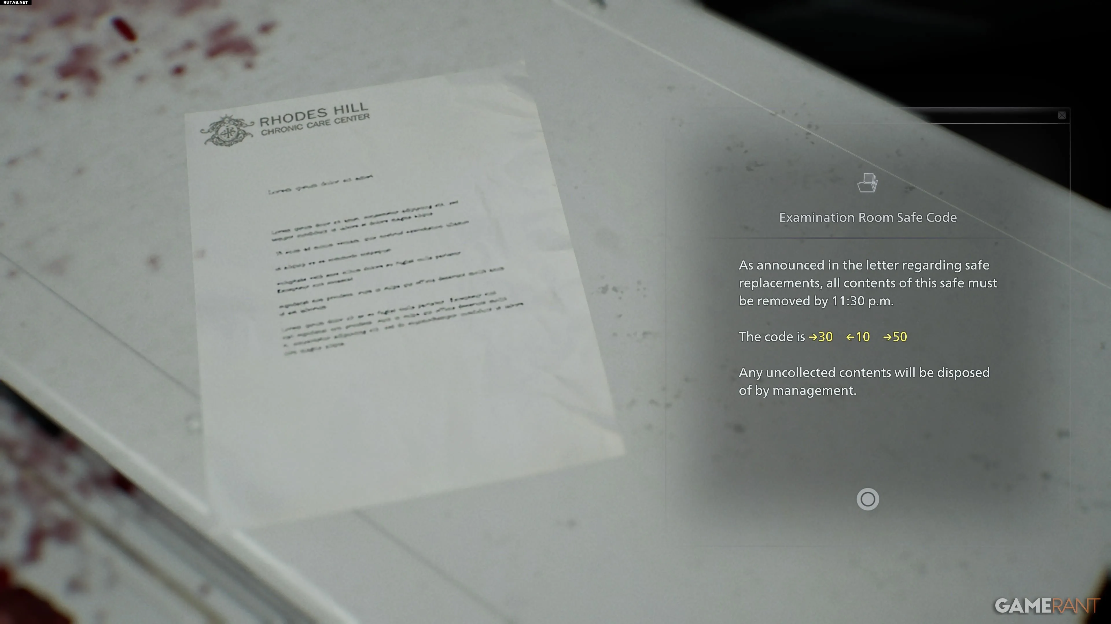Код от сейфа в смотровой в Resident Evil 9