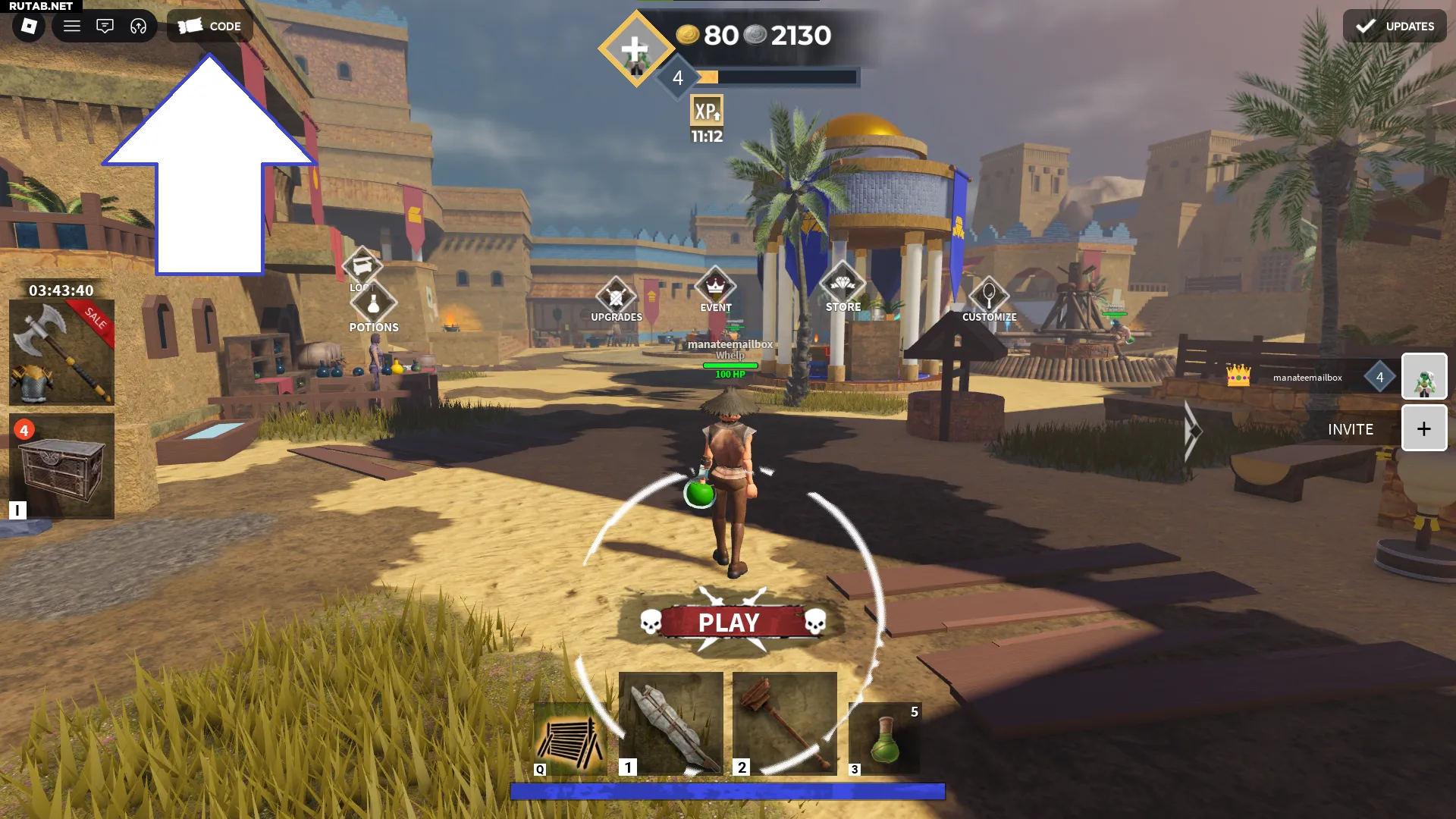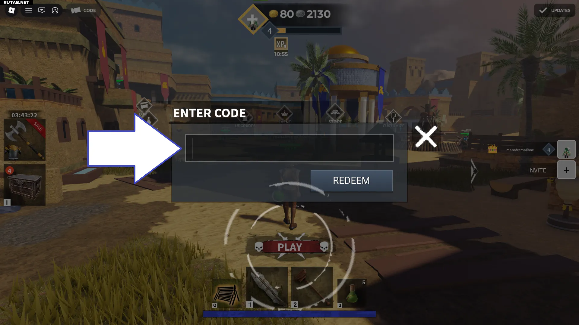 - В лобби игры нажмите кнопку «CODE» в левом верхнем углу экрана.