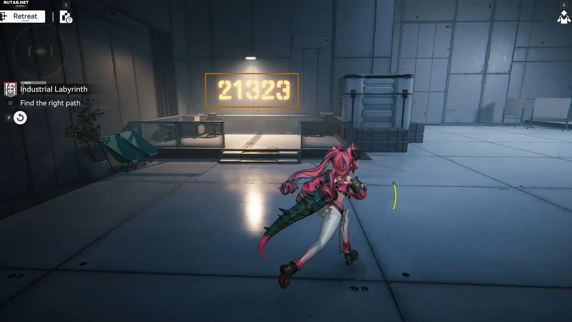 Вначале вы пройдете через несколько коридоров и попадете в комнату с числом на стене. Запомните его (это 21323), оно пригодится позже. Продолжайте движение по единственному открывающемуся пути.