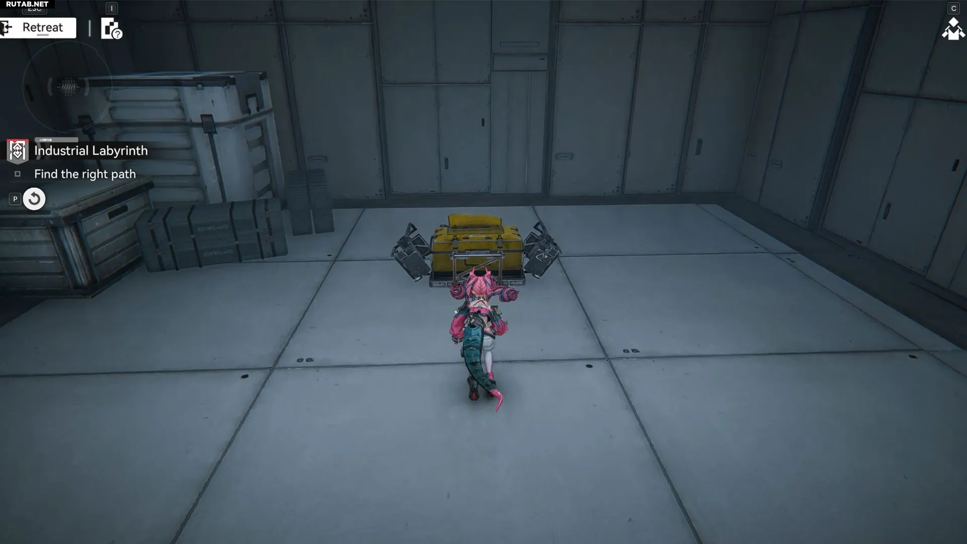 В последней головоломке появится огромный коридор со множеством открывающихся стен. Здесь все просто: можно одновременно найти последний сундук и выход. Заходите в любую комнату с порталами «Протокол выхода» и взаимодействуйте с ними. Это будет переносить вас в другие комнаты с такими же порталами. Продолжайте, пока не окажетесь прямо перед третьим, финальным сундуком лабиринта.