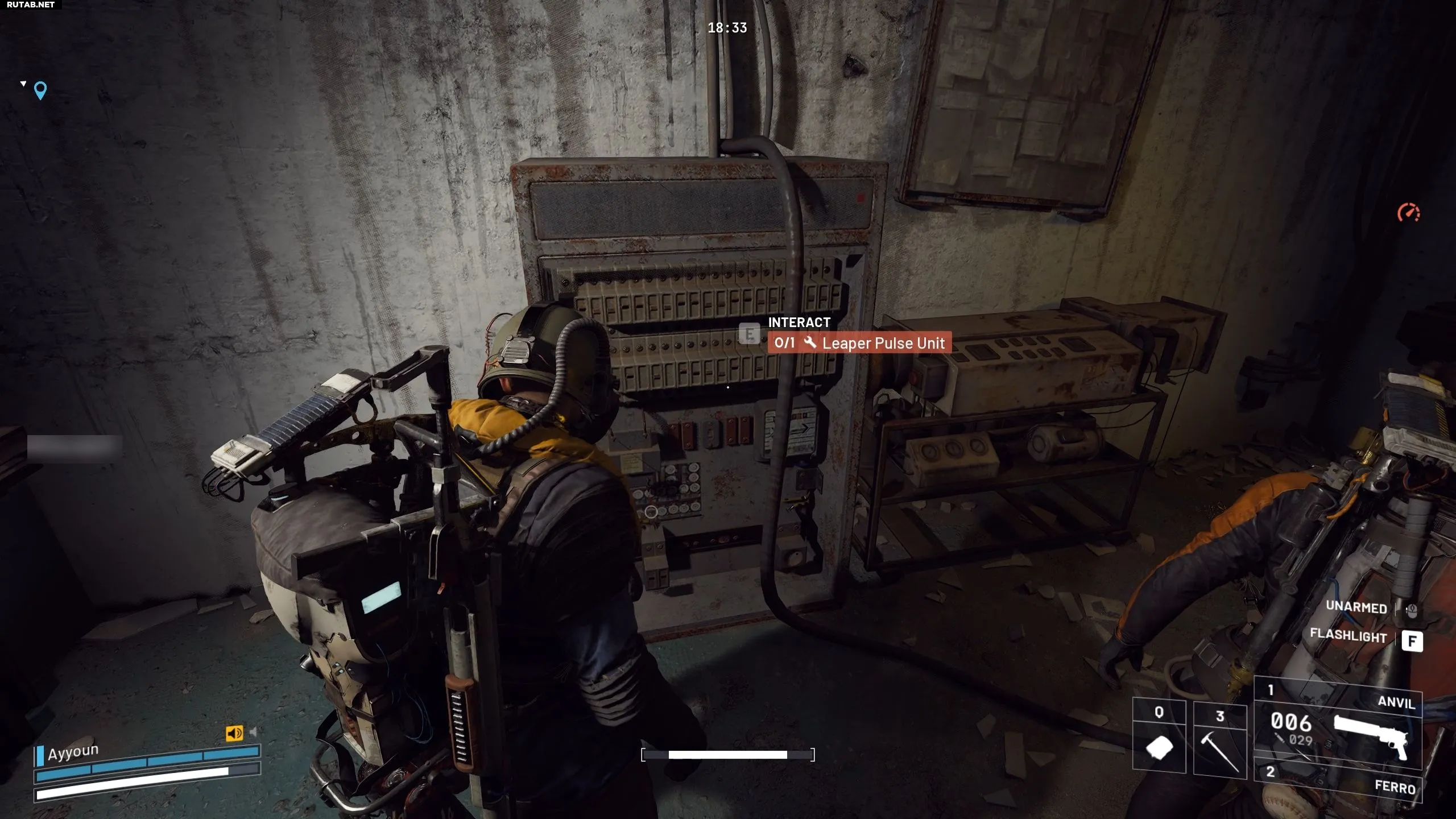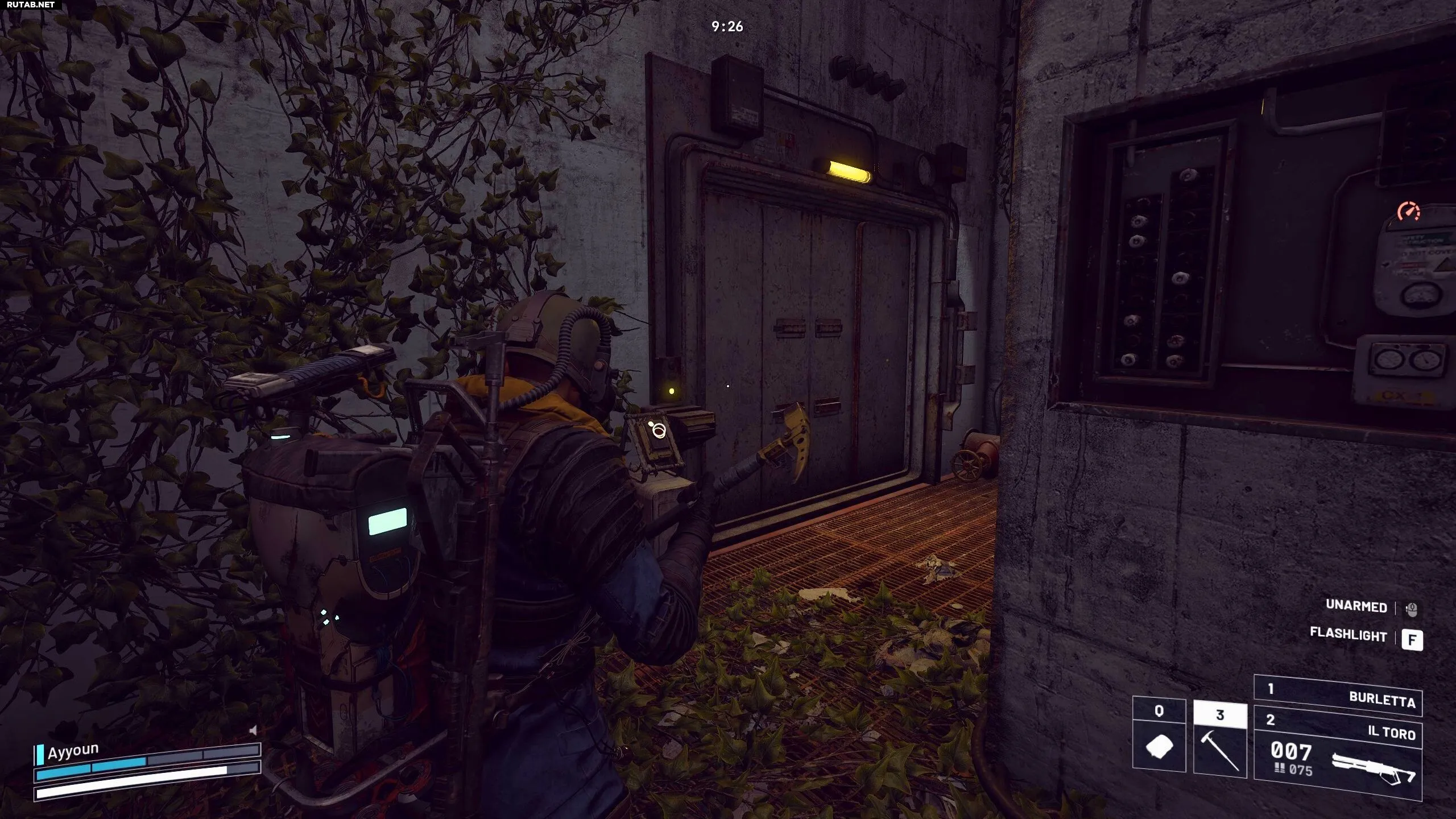 Оказавшись внутри зоны, первым делом найдите аккумулятор на нижнем этаже. Скорее всего, он будет рядом с генератором в соединительной комнате или на открытой площадке без зарослей. Найдя аккумулятор, вставьте его в панель напротив главного офиса на верхнем этаже.