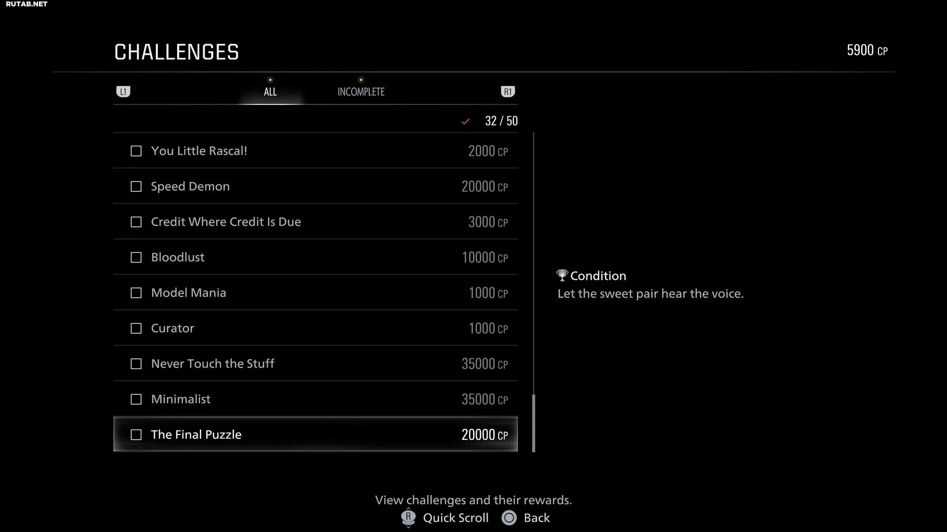 Финальный пазл — это одно из многих испытаний, перечисленных в меню «Испытания» Resident Evil Requiem. За его выполнение начисляется 20 000 CP, а единственная подсказка для этого конкретного испытания звучит так: