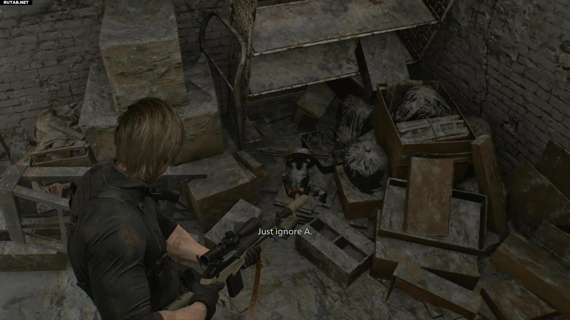 После этого зайдите в заднюю часть оружейного магазина Кендо, где вы найдёте туловище игрушки «Дядюшка Боб». Взаимодействуйте с ним, и вам скажут: «Просто игнорируй A». Мы можем предположить, что это означает возможность удалить символ «A» из кода, полученного с Отрубленной руки.