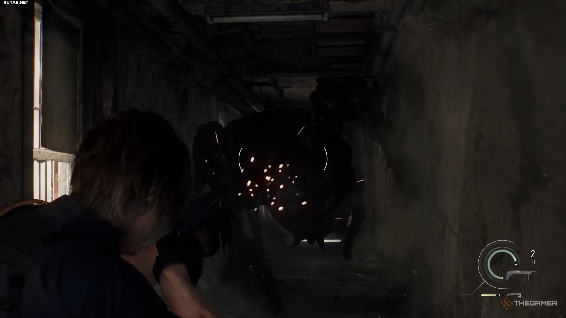На одном из верхних этажей придётся разобраться с роем мелких пауков. Они цепляются к Леону и наносят небольшой урон. Каждый из них умирает от одного выстрела, а граната или выстрел из дробовика могут уничтожить сразу нескольких.