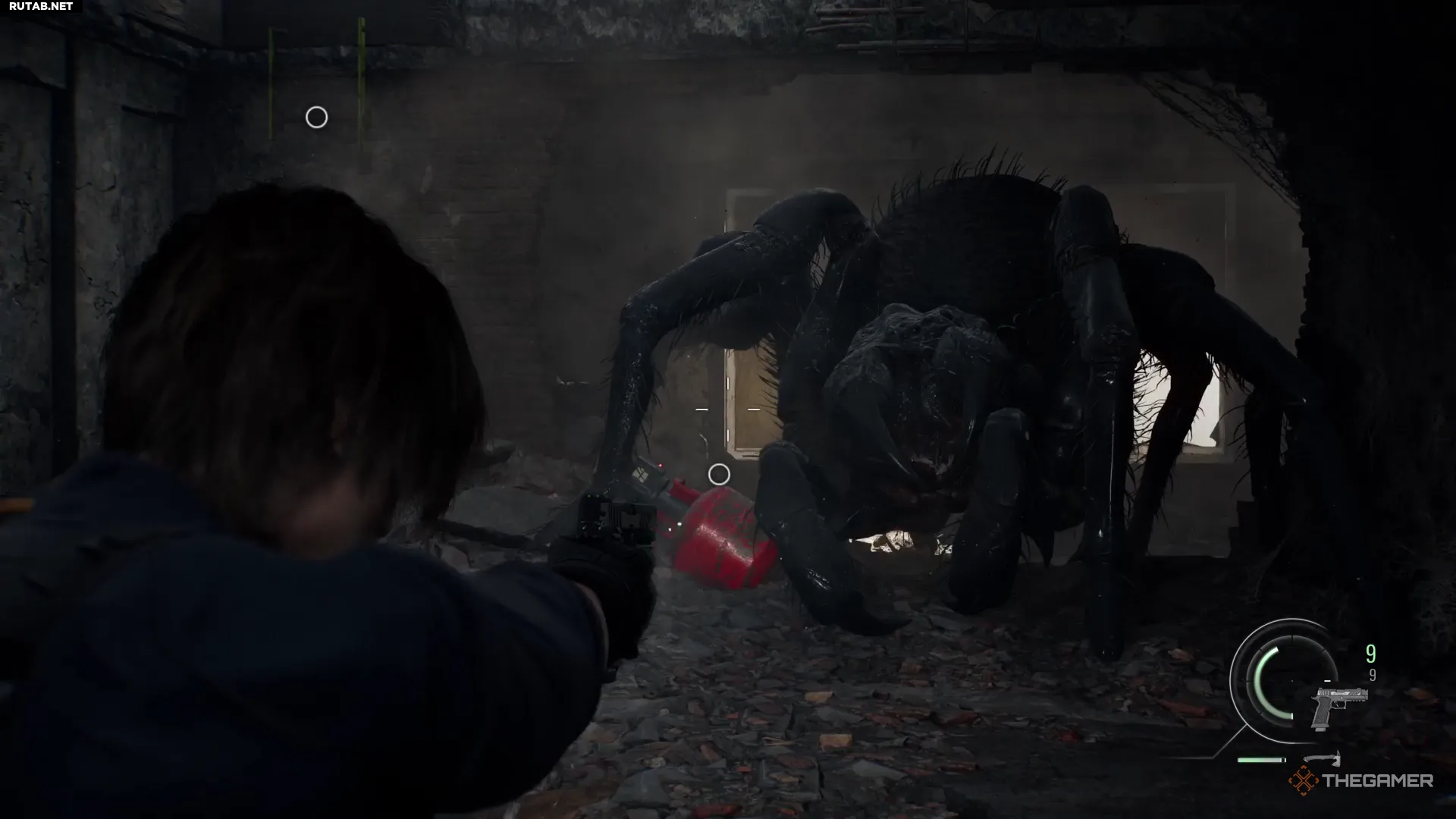 Когда паук будет близок к поражению, он развернётся и опутает Леона паутиной, обездвижив его. Последующая атака наносит серьёзный урон, поэтому держите наготове лечебные травы. Продолжайте сосредоточенно стрелять по слабому месту, и вскоре вы одержите победу.