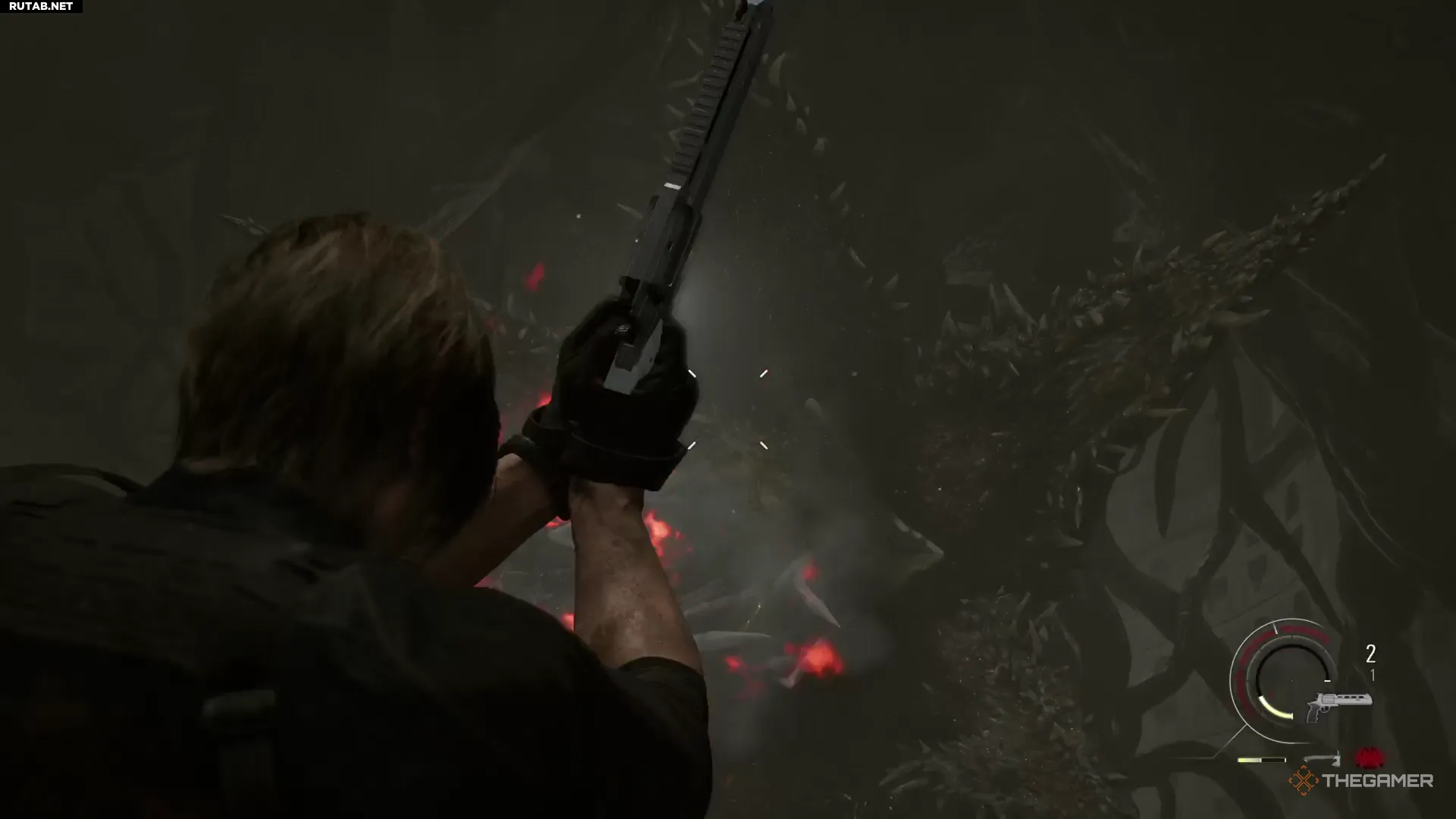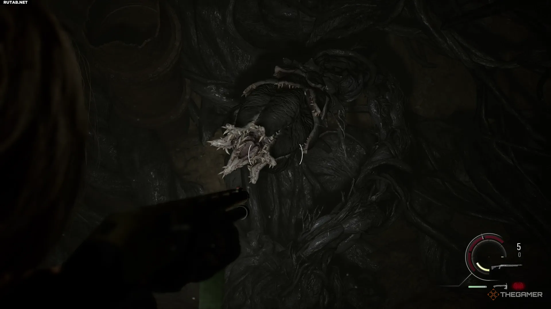 Тоннели заполнены мелкими отростками, которые оживут и нападут, как это было в поезде. В условиях тесного пространства не бойтесь парировать и обрушивать на врагов всю мощь, когда растительные головы широко раскроются. Чтобы их уничтожить, хватит всего нескольких выстрелов из дробовика.