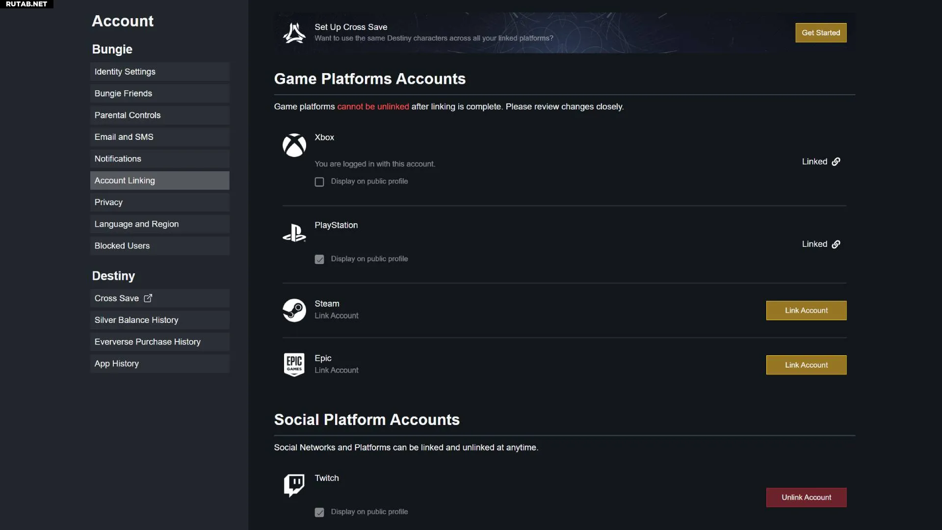 Для разблокировки наград вам понадобятся аккаунты Bungie и Twitch. Процесс связывания: