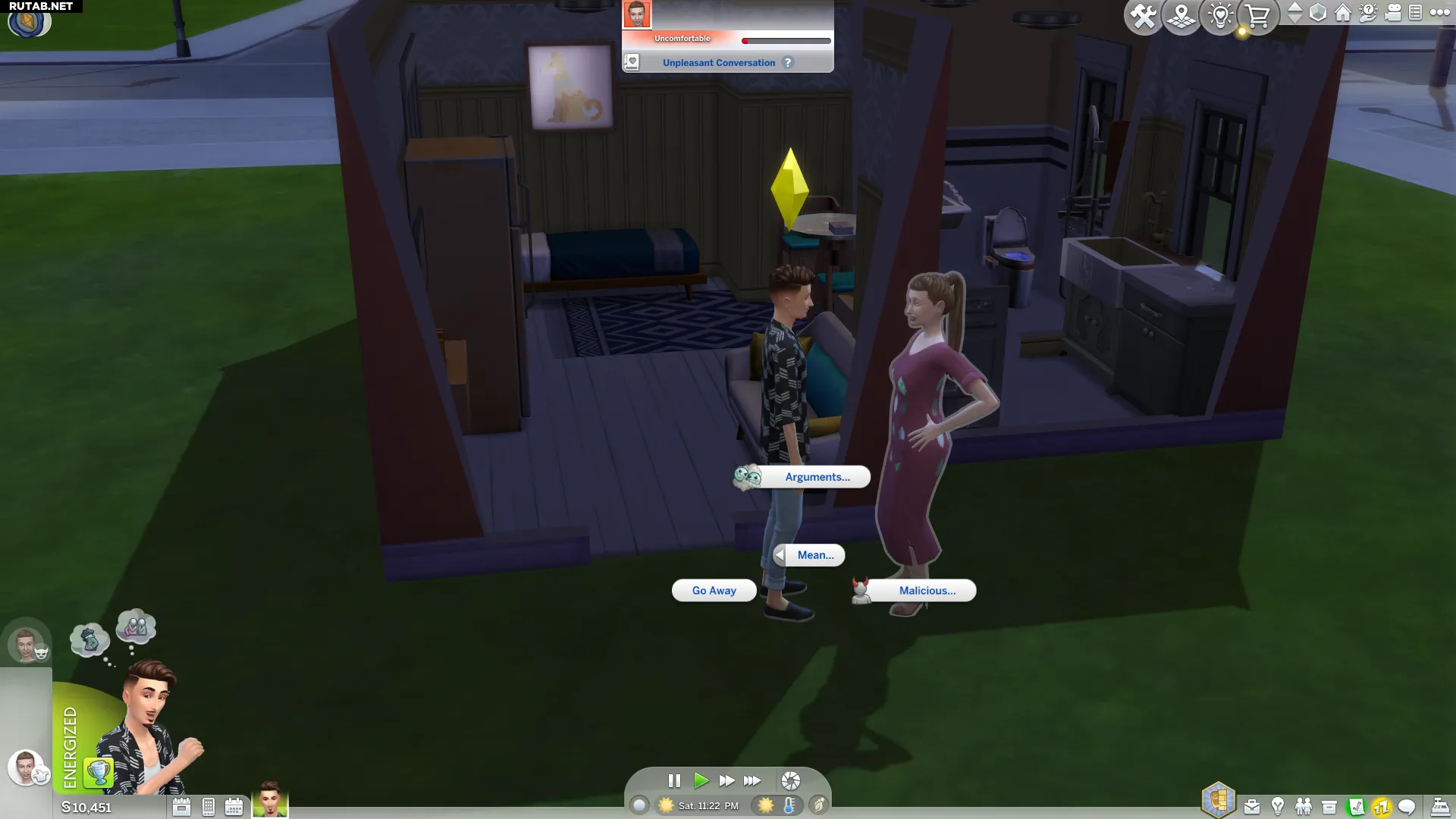 Нахождение рядом с объявленным врагом усиливает эффект злости, что упрощает выполнение последней задачи. Как только персонаж разозлится, любое его действие будет засчитываться в прогресс. Социальные взаимодействия из вкладки «Спорить» с большей вероятностью вызывают состояние злости.