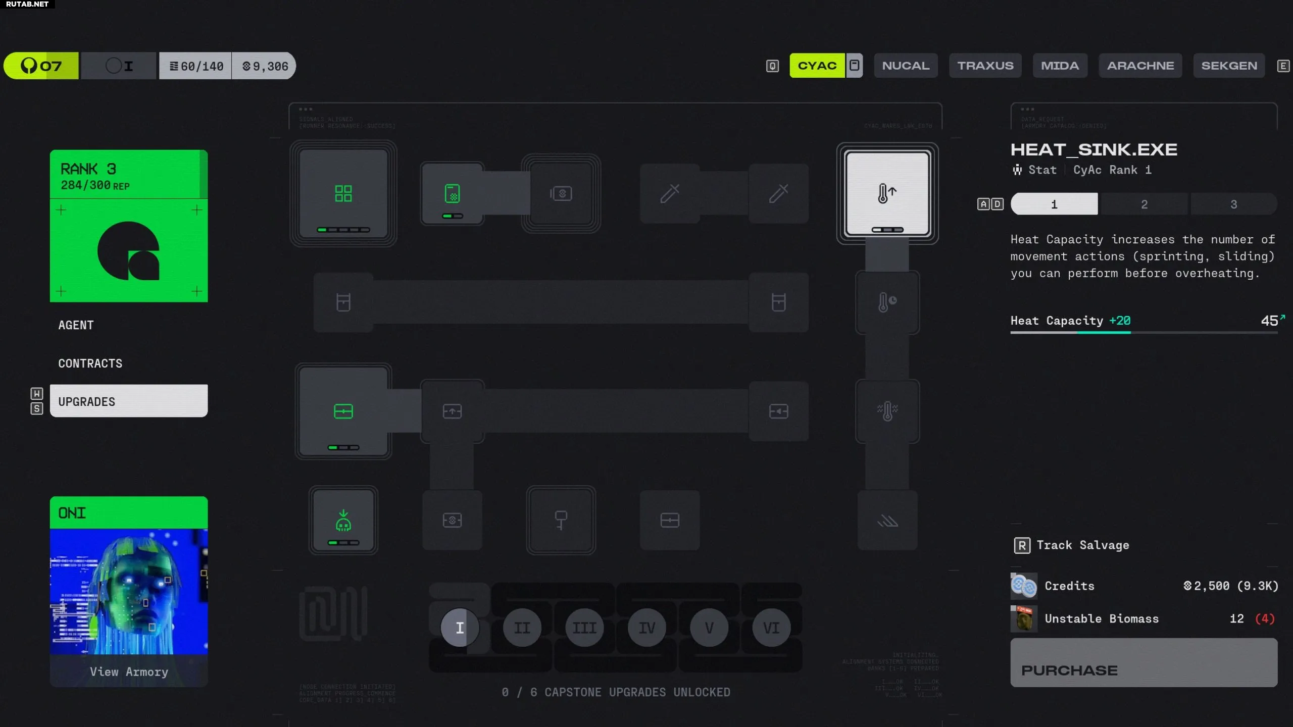 Для постоянного увеличения запаса Тепла/выносливости можно изучить навык Heat_Sink.exe в ветке развития Cyberacme. Первое улучшение потребует 12 единиц Нестабильной биомассы и 2500 кредитов и увеличит запас Тепла на +20 очков.