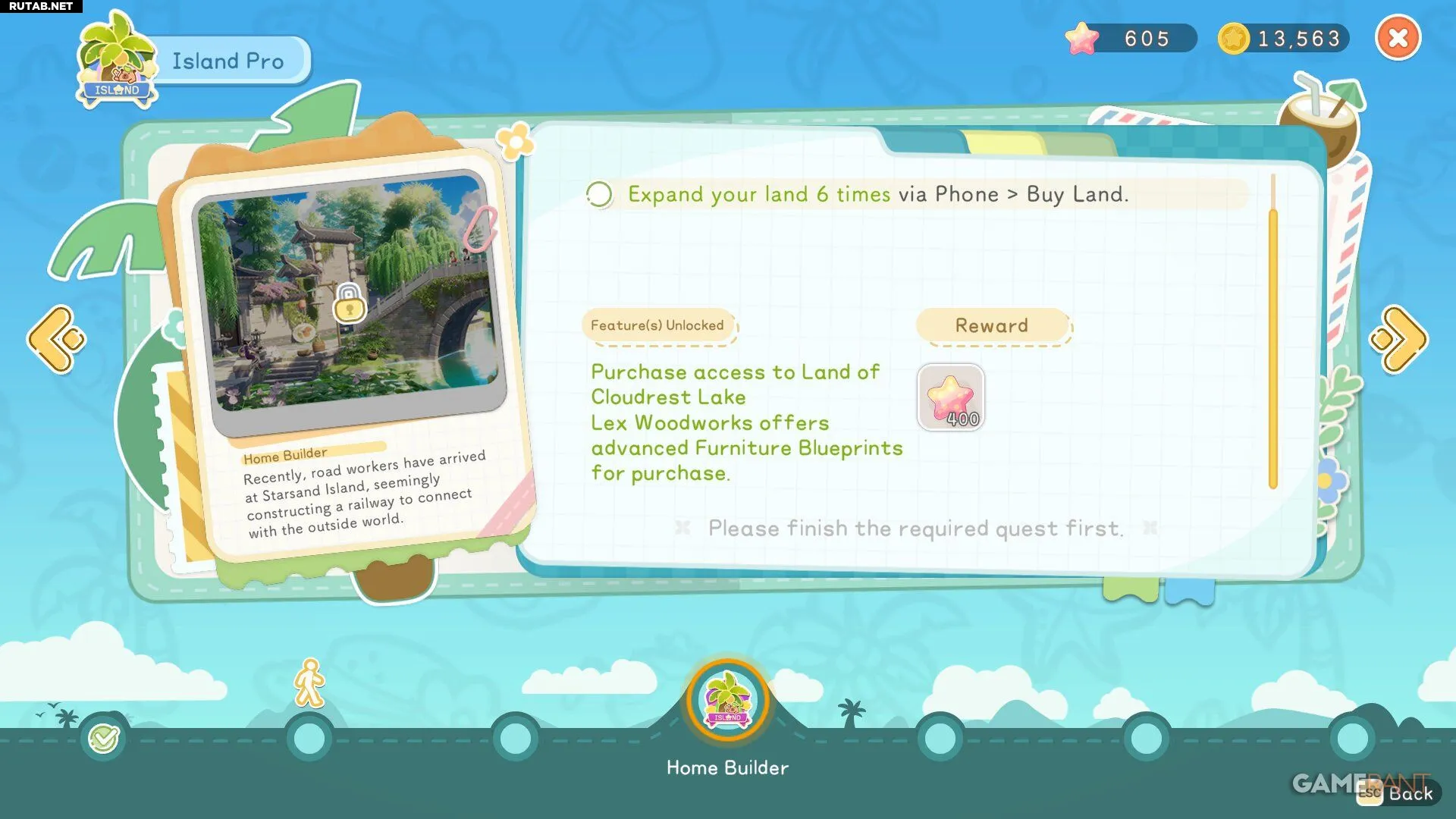 Есть четыре направления, в которых можно зарабатывать опыт, и они связаны с тем, как вы взаимодействуете с игрой. «Строительство усадьбы» связано с системой режима строительства и открытием новых областей острова, что достигается по мере прохождения игры.