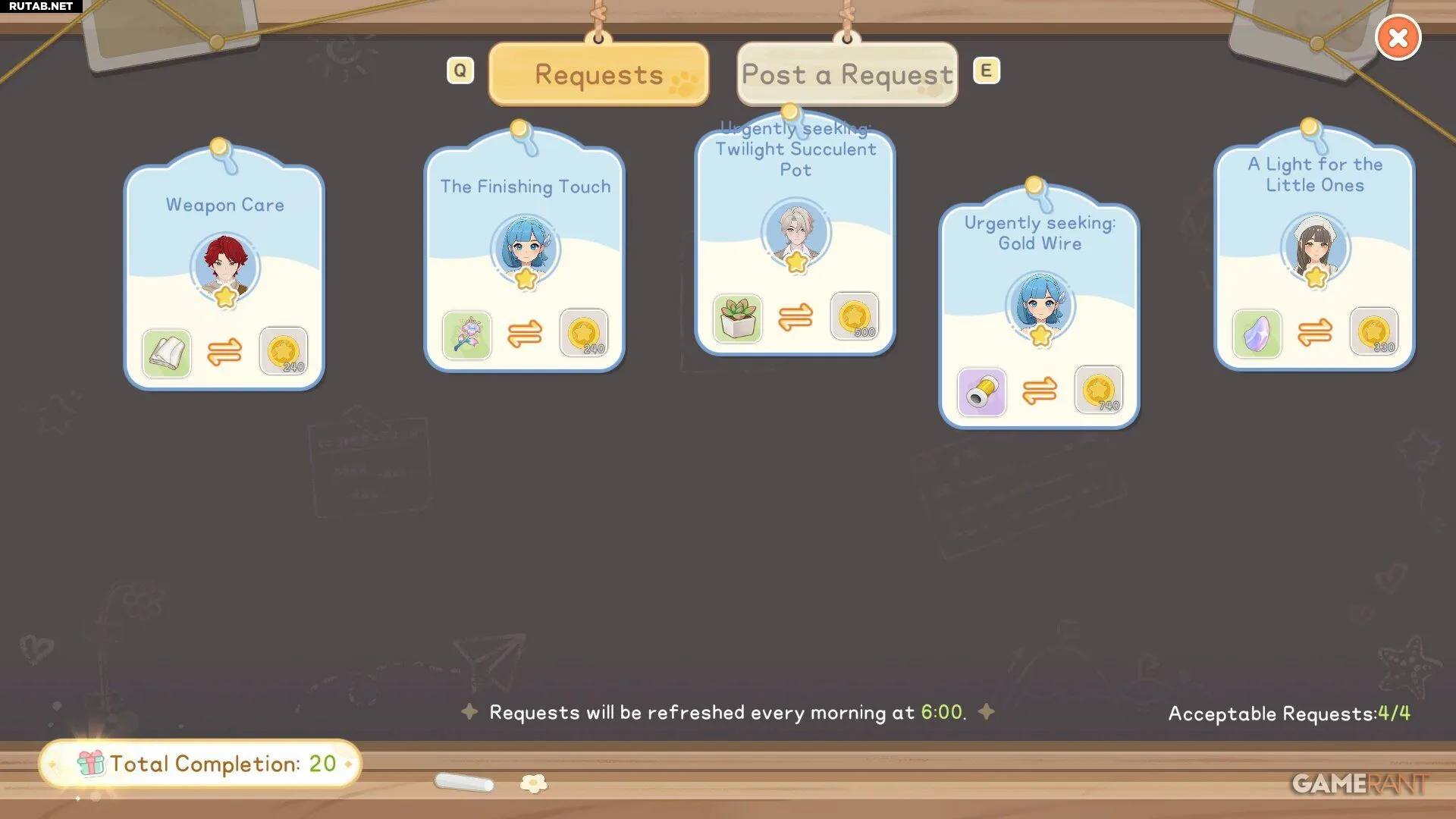 Однако эти просьбы ограничены по времени, поэтому обязательно читайте уведомление и обращайте внимание на пометку «Лимит времени», чтобы спланировать свой день. Существует ежедневный лимит на количество принимаемых заданий, но он сбрасывается каждый день в 6 утра по внутриигровому времени.