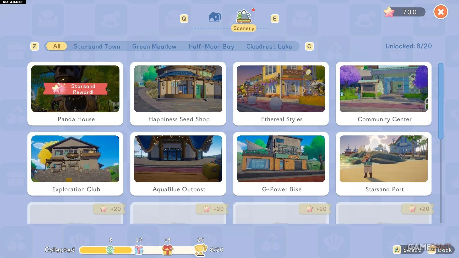 Здесь вы увидите все важные достопримечательности во всех районах Острова Звёздного Песка, включая те, которые ещё не сфотографированы. За каждый снимок такой точки вы получите по 20 Очков Звёздного Песка, а достигая определённых вех, вы откроете дополнительные награды для использования в игре.