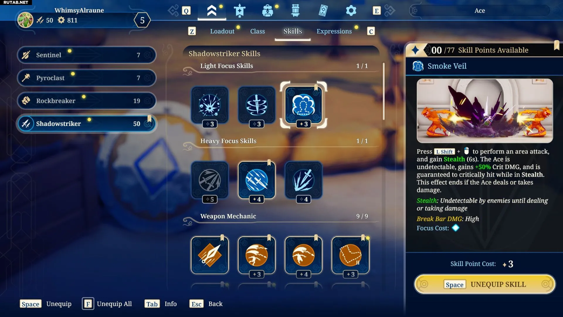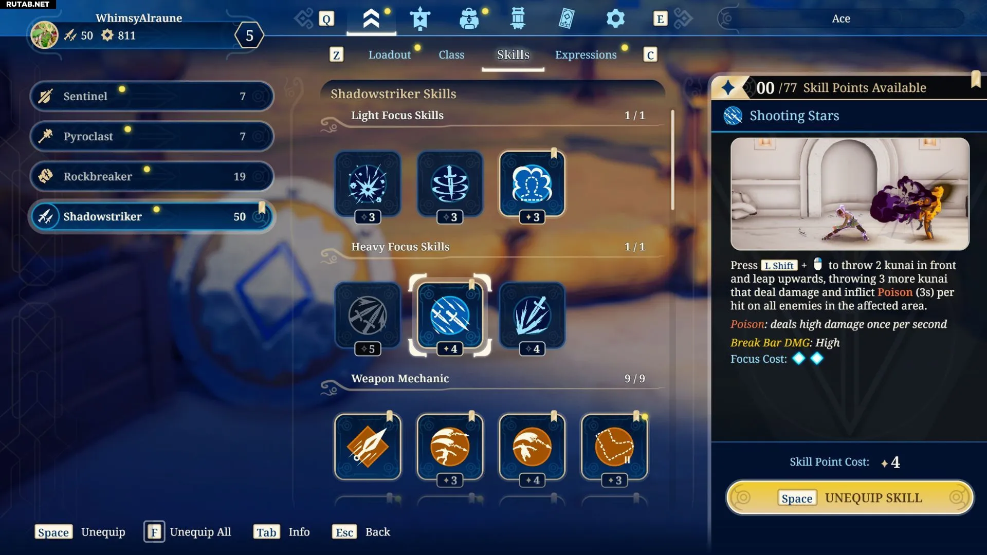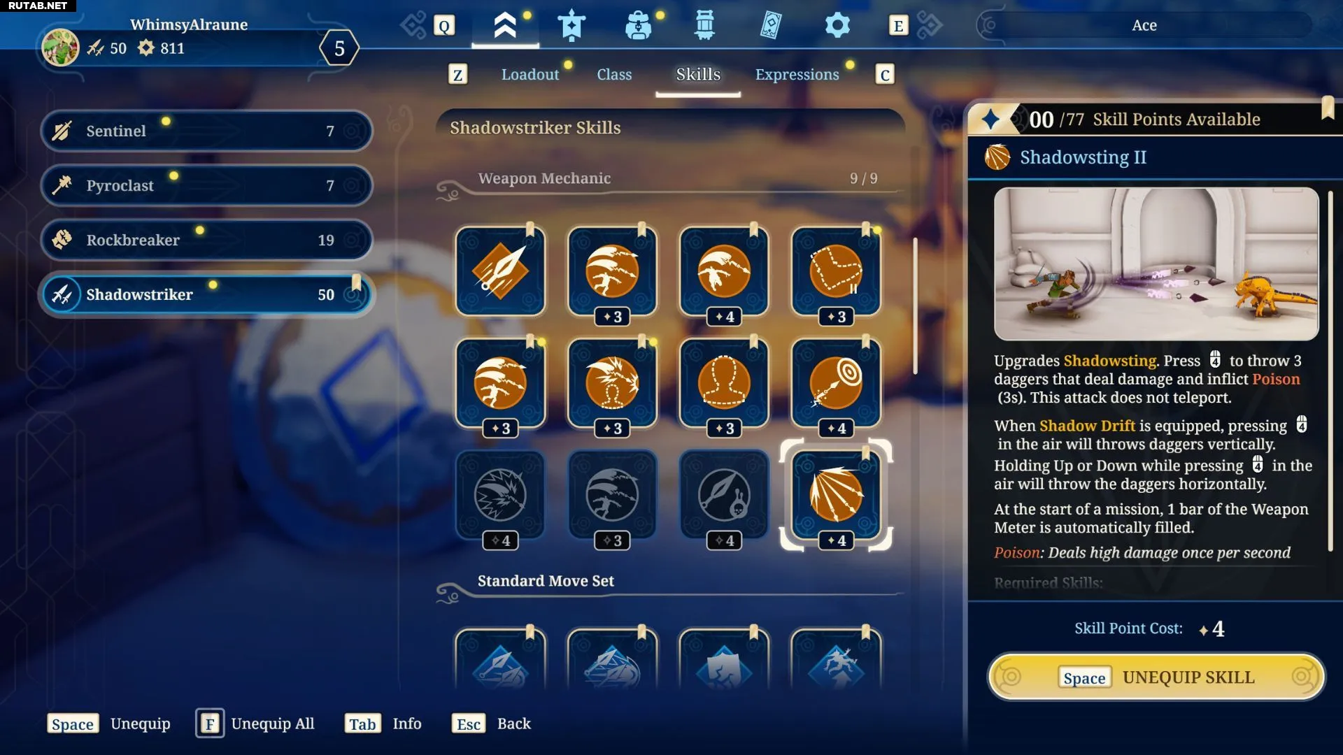 Если вы ещё не разблокировали Теневой укол II, последний слот для механики оружия можно заполнить навыком Боезапас Теневого финта III.