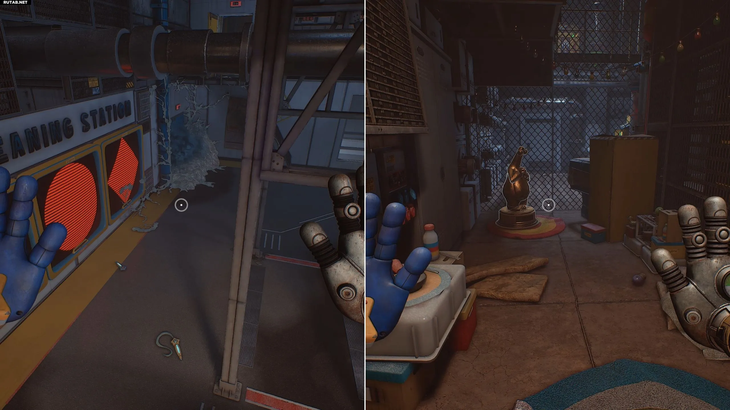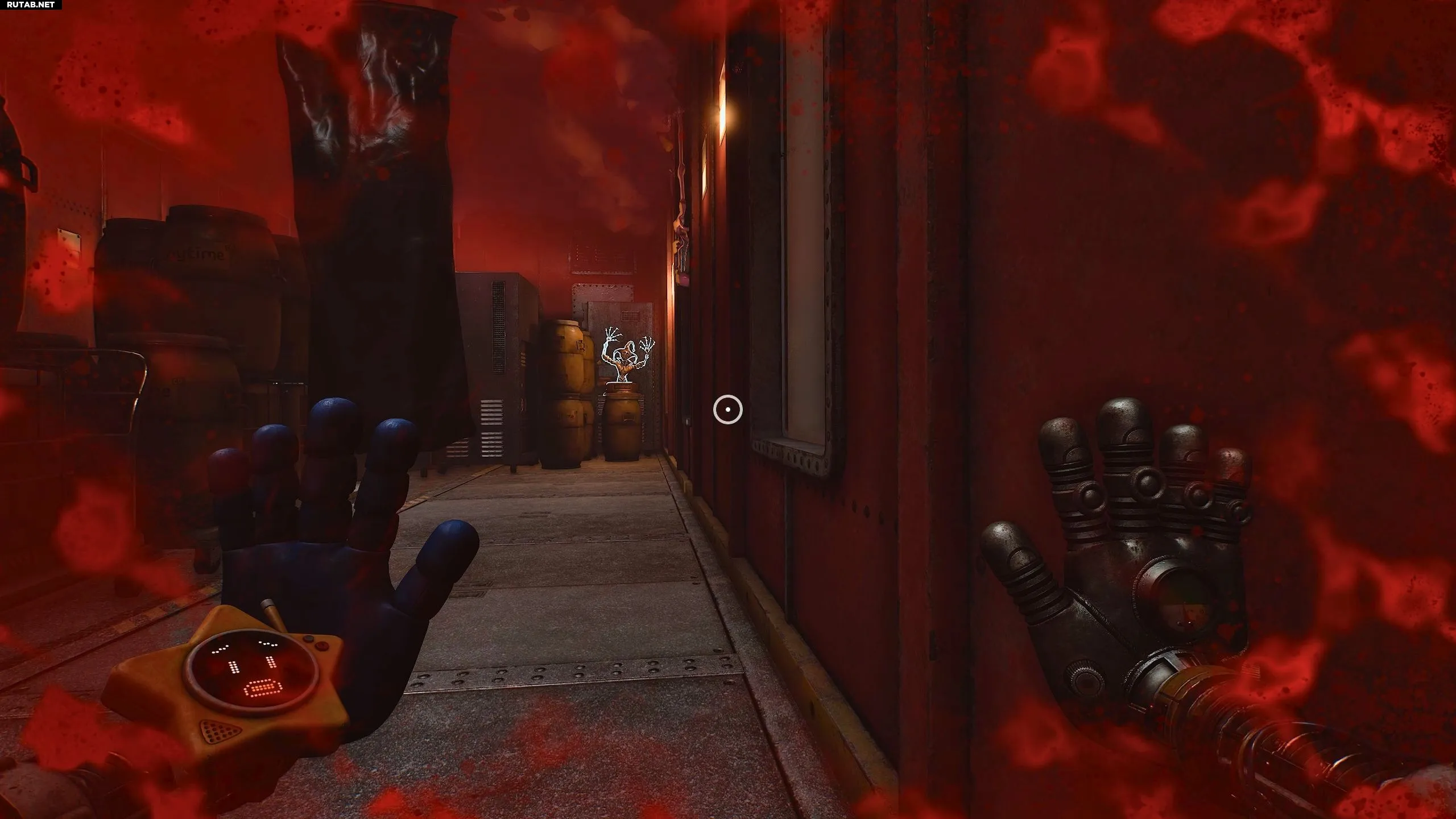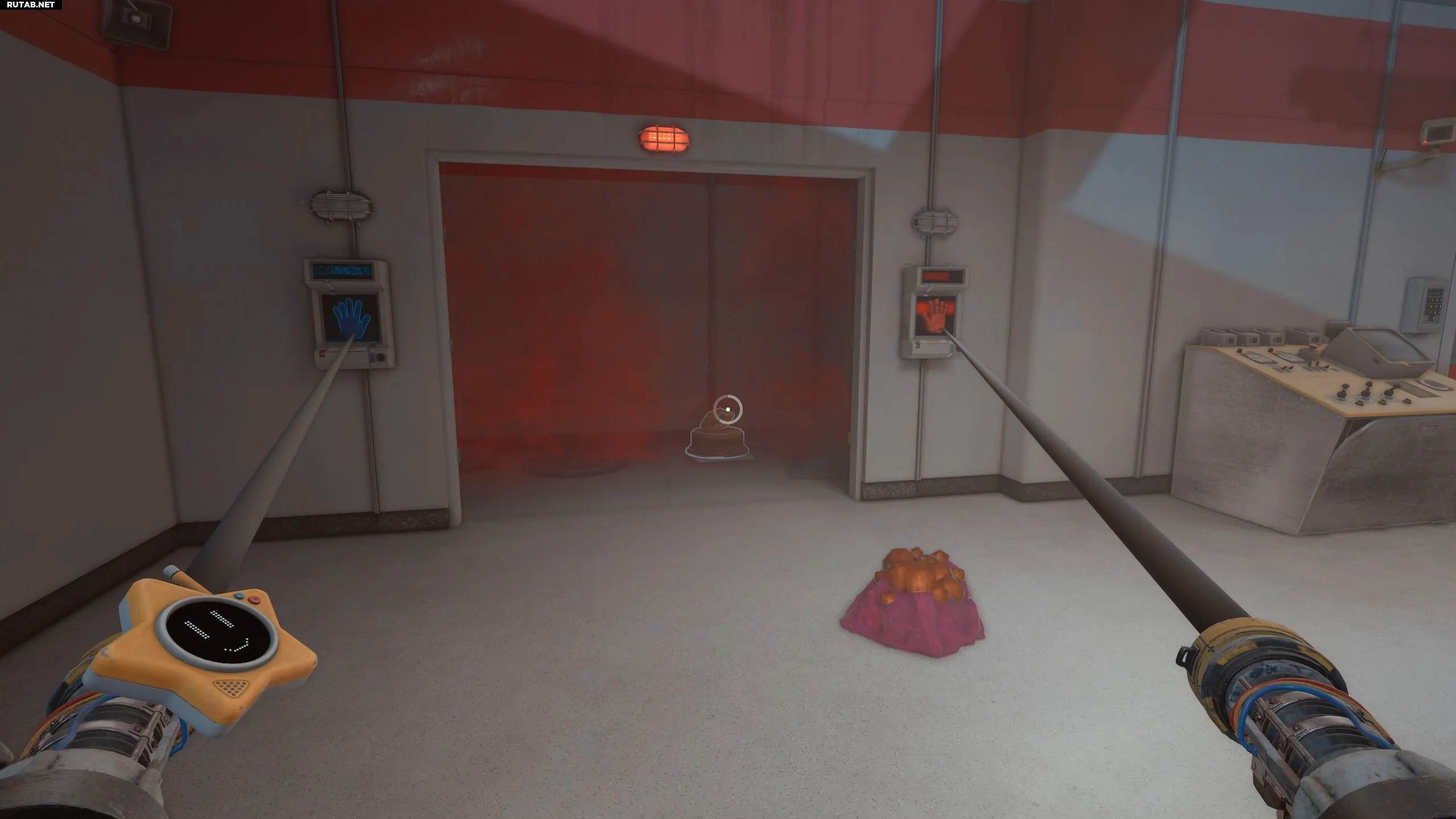 Чтобы открыть дверь, используйте синюю и красную руки на соответствующих сканерах, после чего заберите трофей.