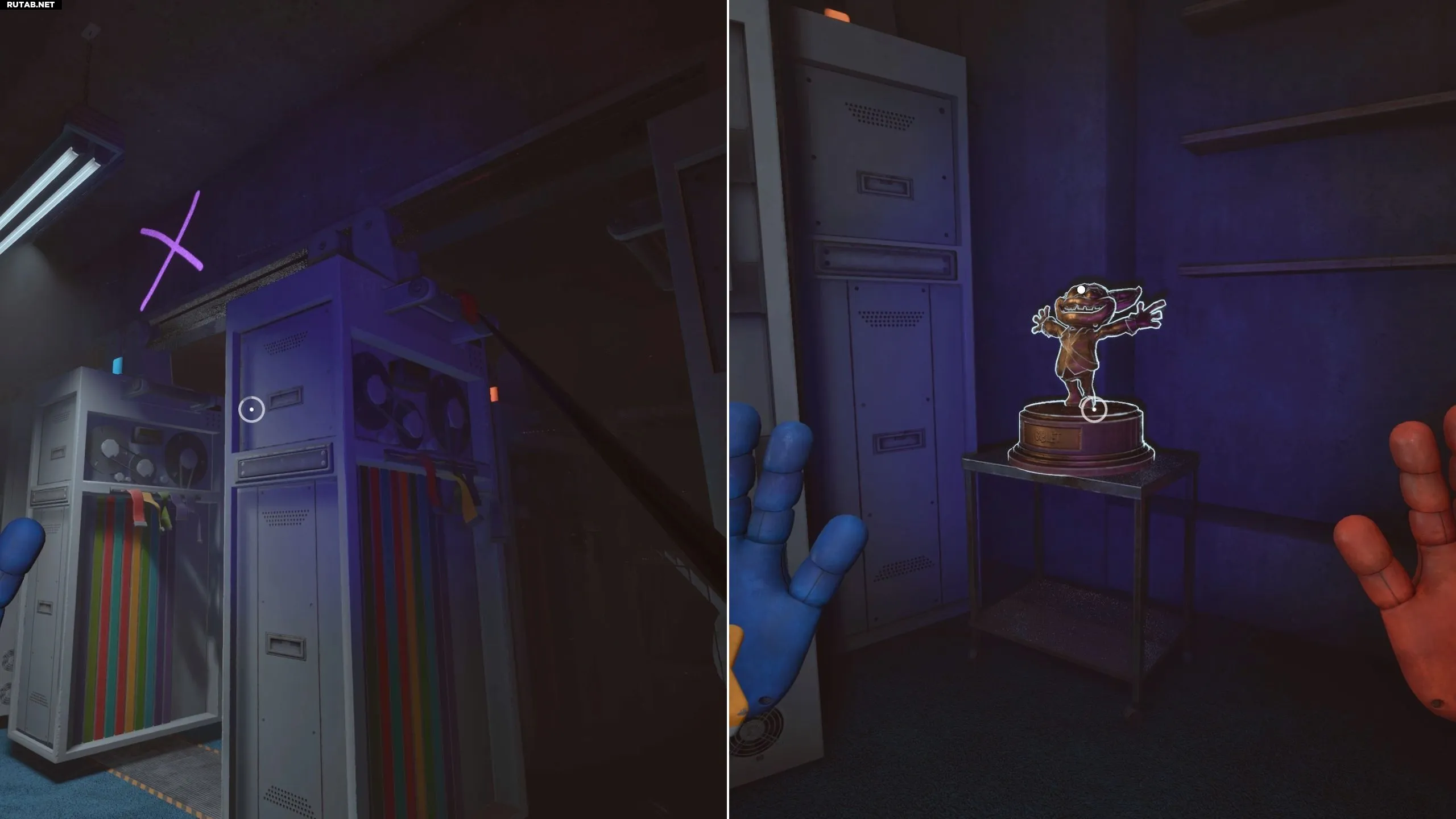В глубине комнаты используйте ультрафиолетовую лампу, чтобы найти крестик на одном из серверов. С помощью ГрабеПака потяните за ручку сервера справа, чтобы отодвинуть его. За ним вы найдете скрытое пространство с трофеем.