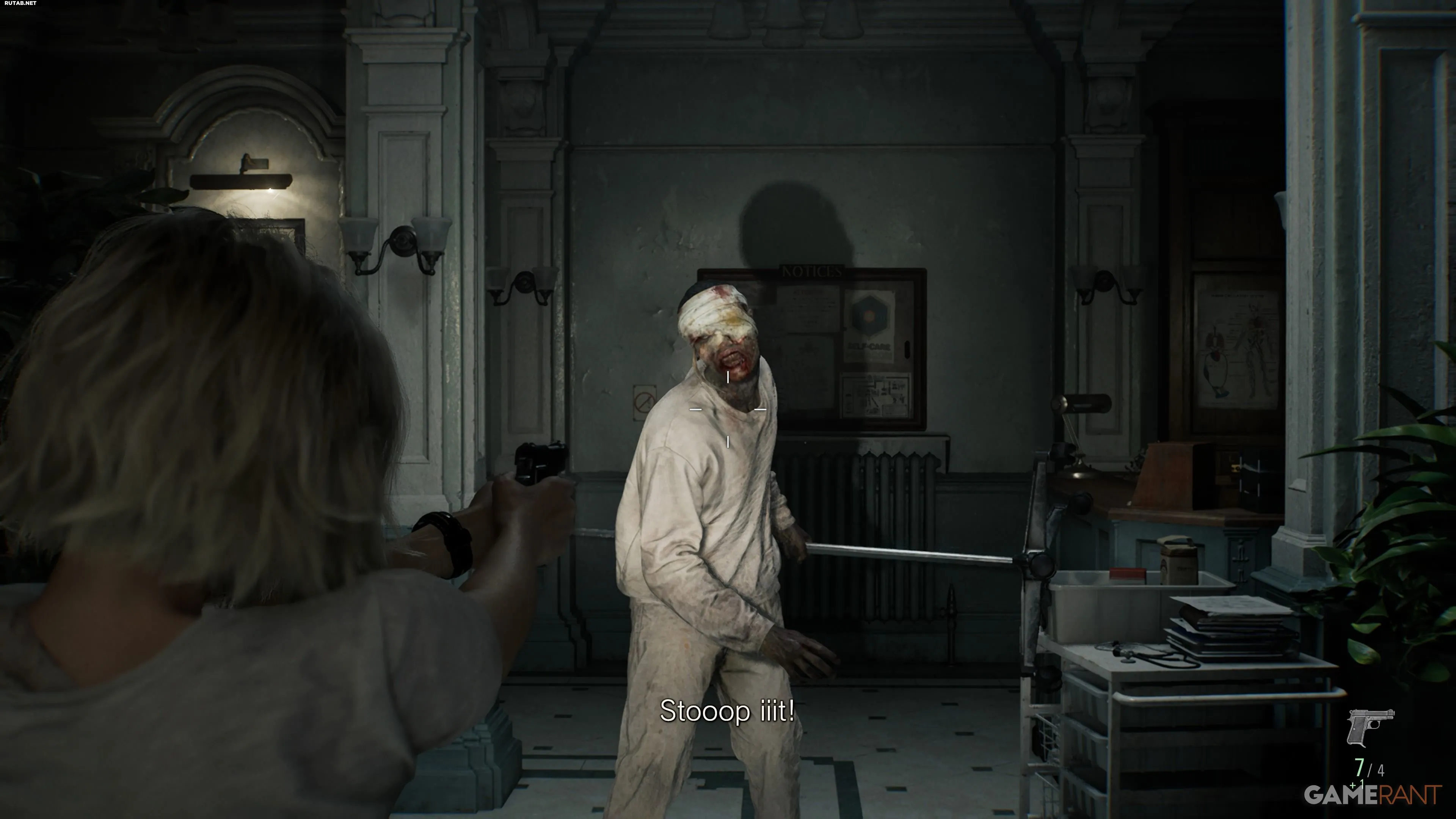Грейс не создана для убийства зомби. Она не Леон. Играя за Грейс, вы должны стараться избегать как можно большего числа врагов. Просто пробегайте мимо них, оглушайте пустыми бутылками и выстрелами в ноги из пистолета и продолжайте двигаться, чтобы оставаться мобильным и сосредоточенным на своей цели.