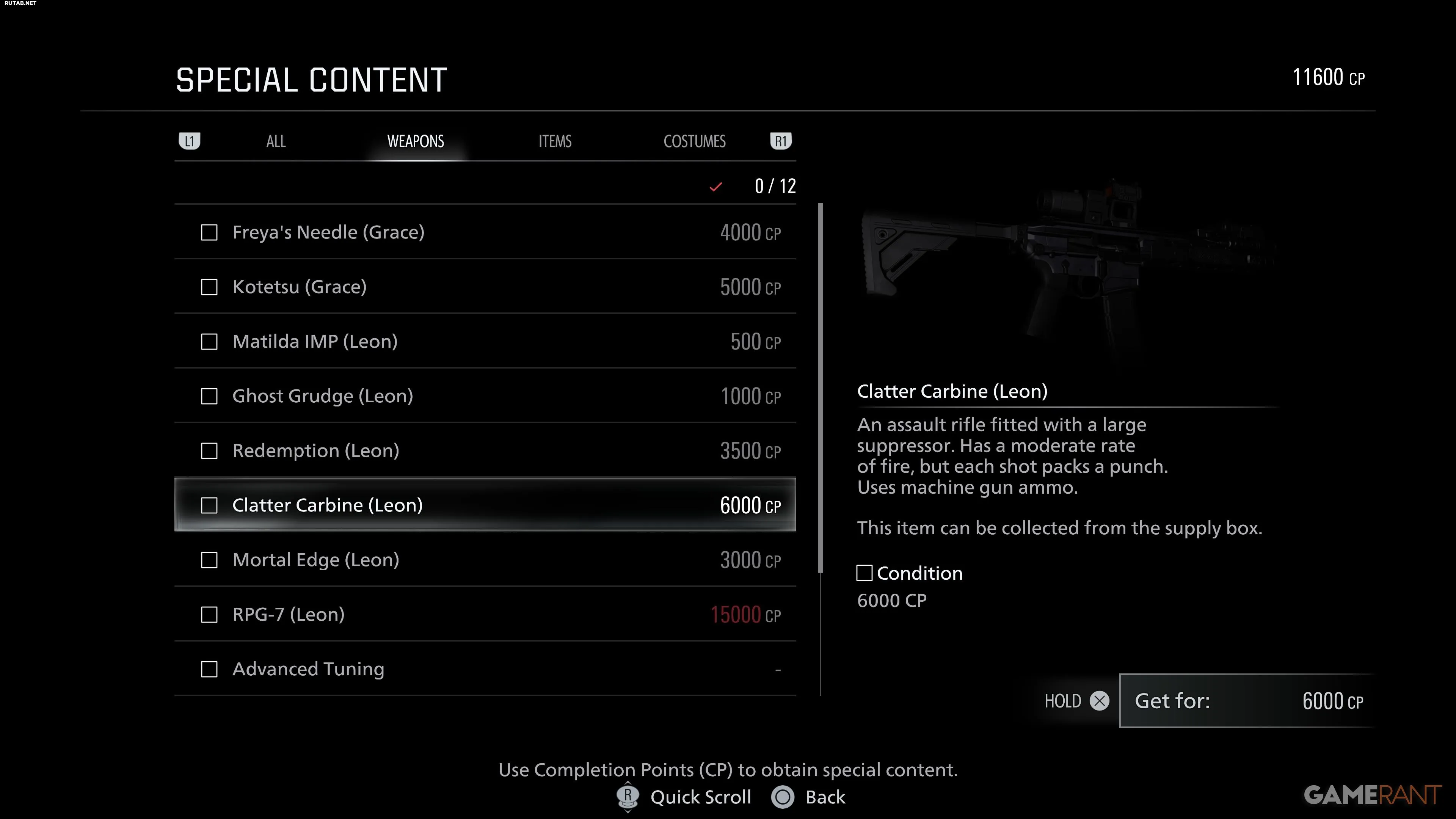 Леон может найти Тактический трекер в Центральном лагере в Восточном Раккун-Сити. С этим устройством за каждое убийство начисляется 500 кредитов, которые можно обменять в ящике снабжения на новое оружие, припасы и дополнительные улучшения для усиления огневой мощи.