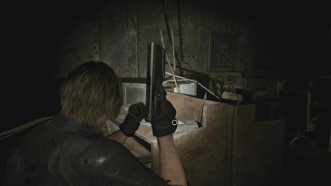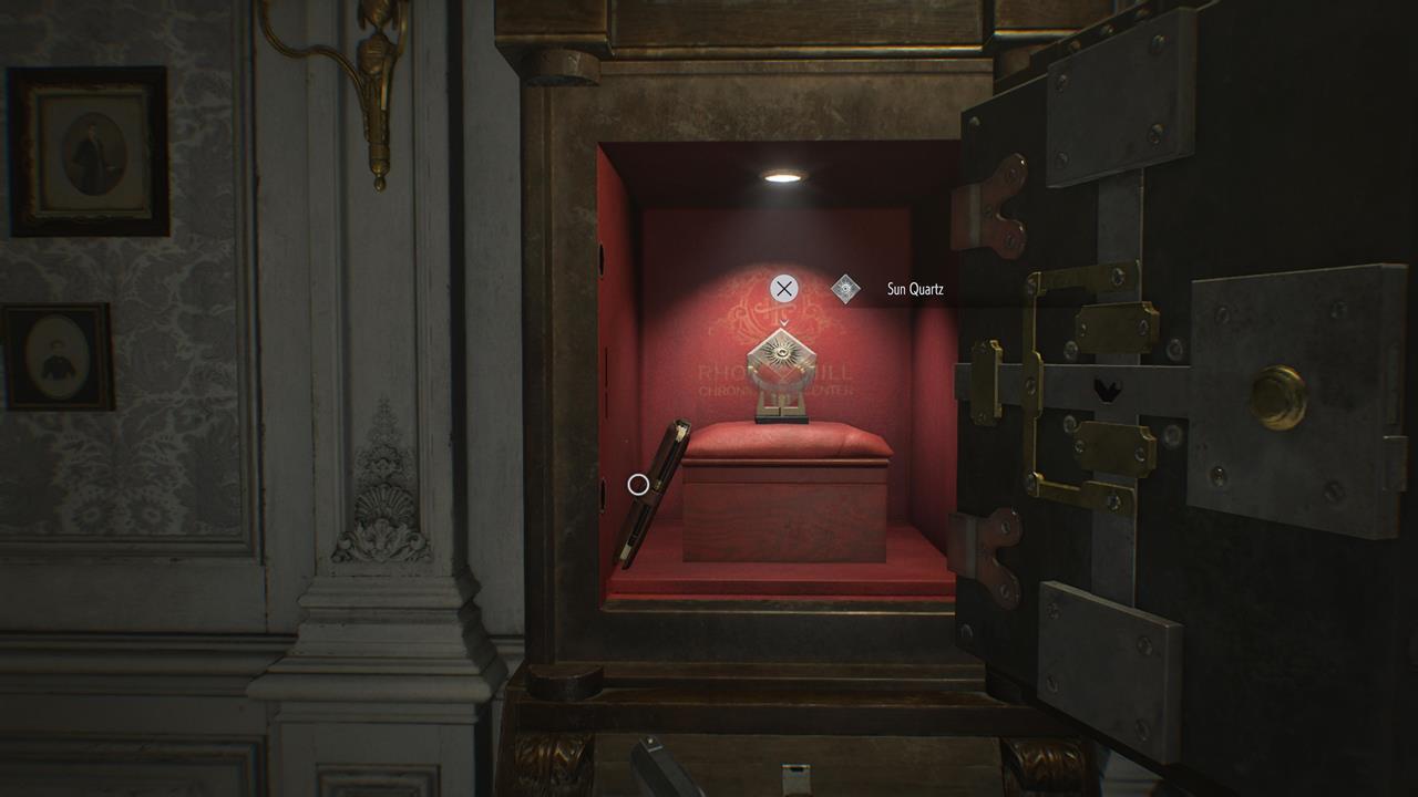 Находится в небольшой нише в зоне инспекции. Если вы ранее, за Леона, прочитали упомянутую выше записку, то сможете открыть сейф, используя эту комбинацию: Вправо 60, Влево 40, Вправо 80.