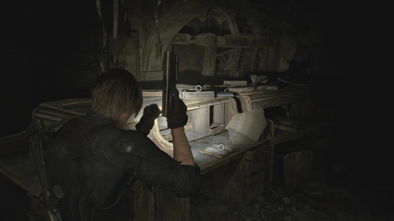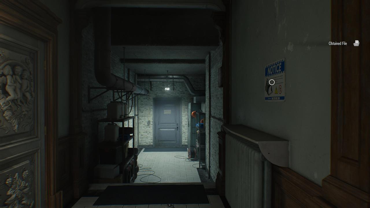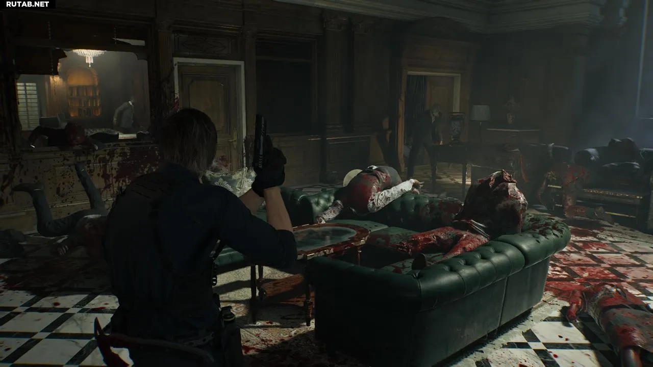 В гостиной Леону предстоит сразиться с целой толпой Пузырчатых голов — мутировавших ранее убитых заражённых. Уничтожьте их и воспользуйтесь лифтом, чтобы получить эти два досье.