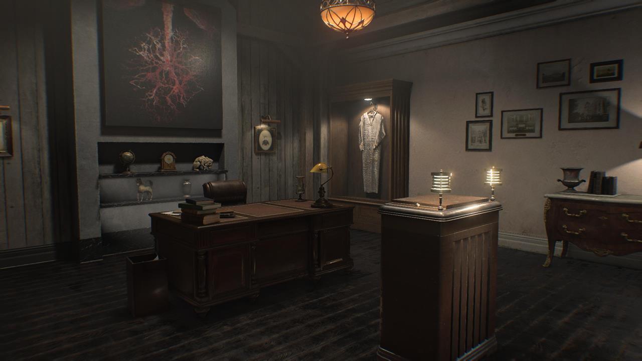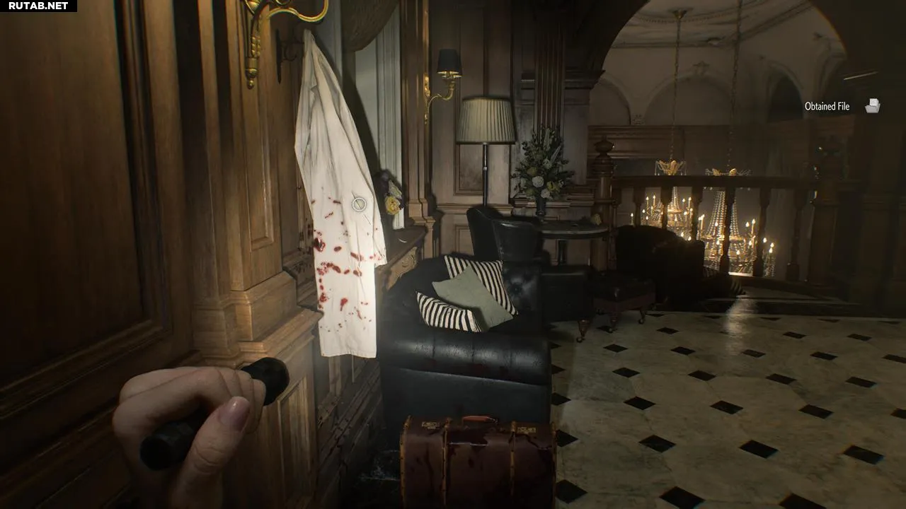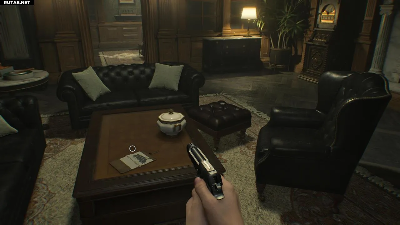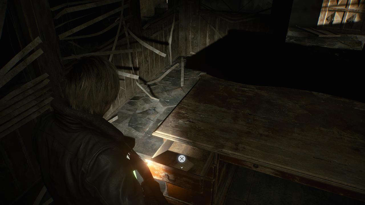 В гостиной Леону предстоит сразиться с целой толпой Пузырчатых голов — мутировавших ранее убитых заражённых. Уничтожьте их и воспользуйтесь лифтом, чтобы получить эти два досье.