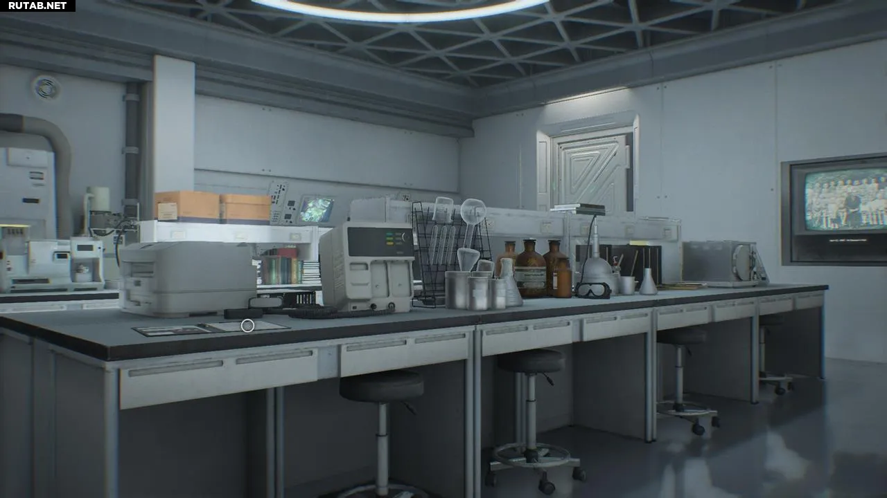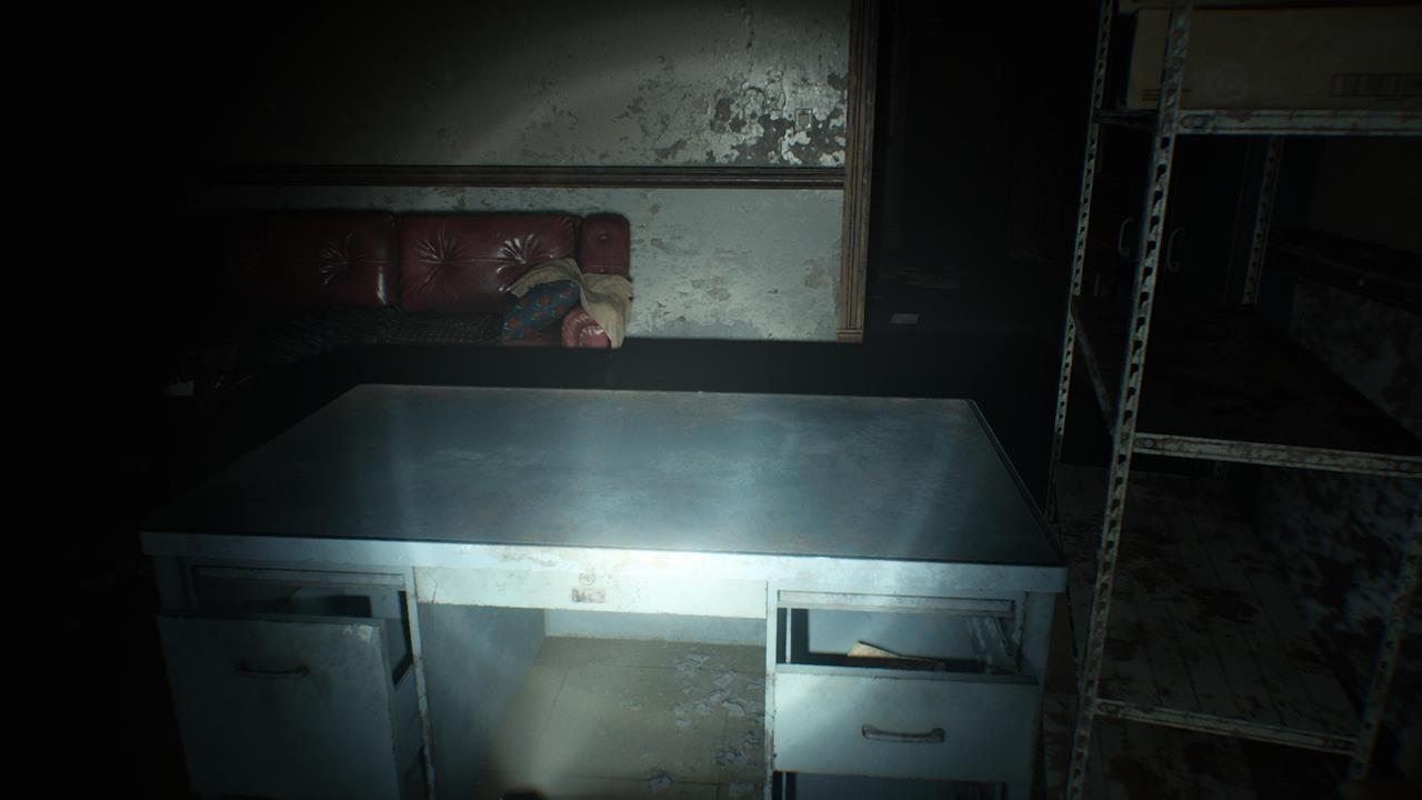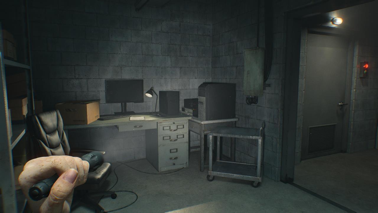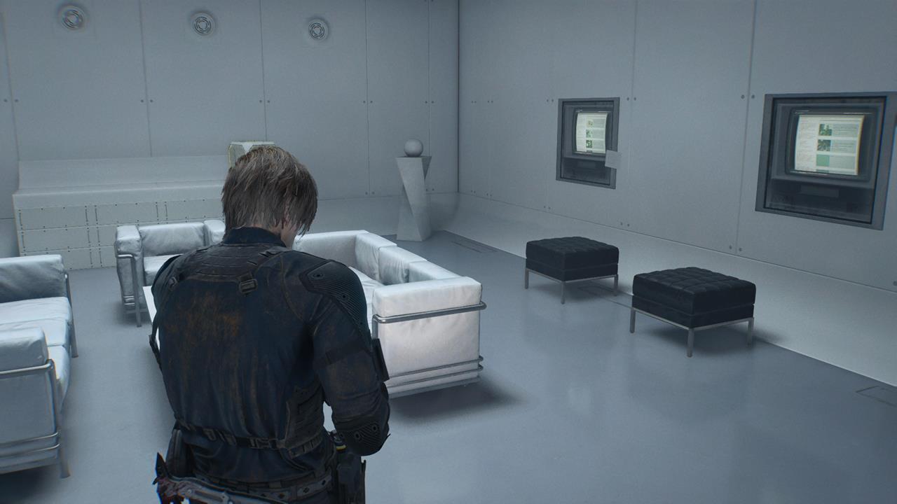 Осмотрите терминал в комнате персонала, где также находится ваша первая точка сохранения/ящик с припасами в этом комплексе.