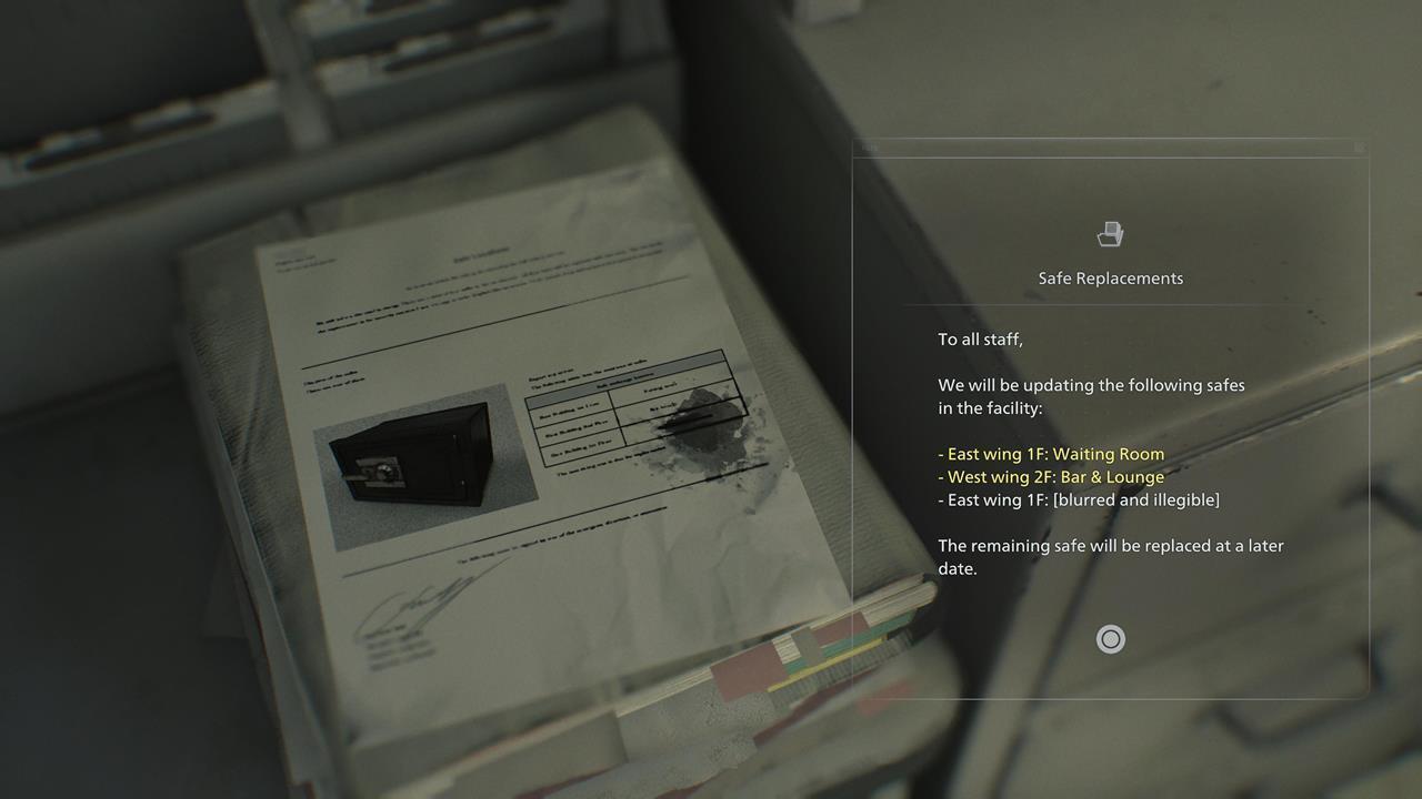 Находится в шкафу сразу за чердаком, но перед лестницей, ведущей в кладовую на чердаке. Не пропустите этот файл, так как в нём содержится комбинация для сейфа, доступ к которому будет только у Грейс в следующем разделе кампании.