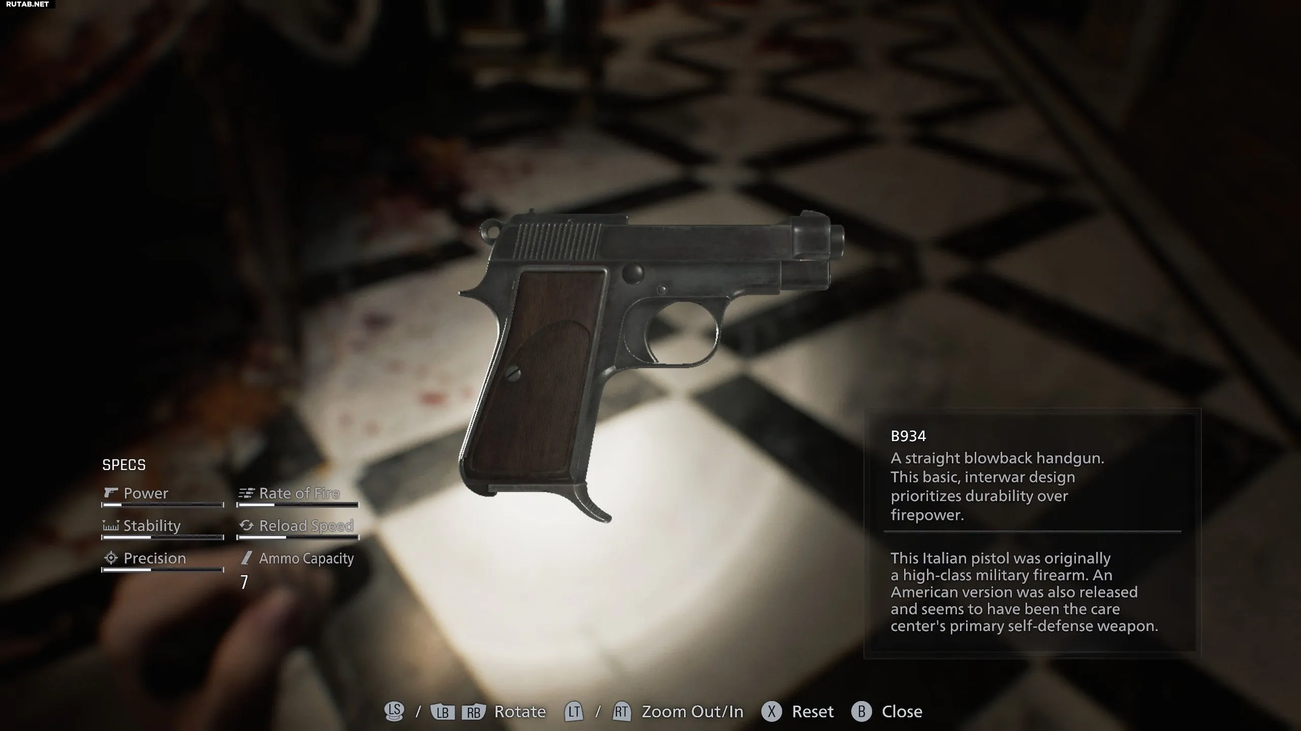| Пистолет B934 | Столовая в Центре опеки | Лежит на полу в столовой, где несколько зомби пируют над трупами. |