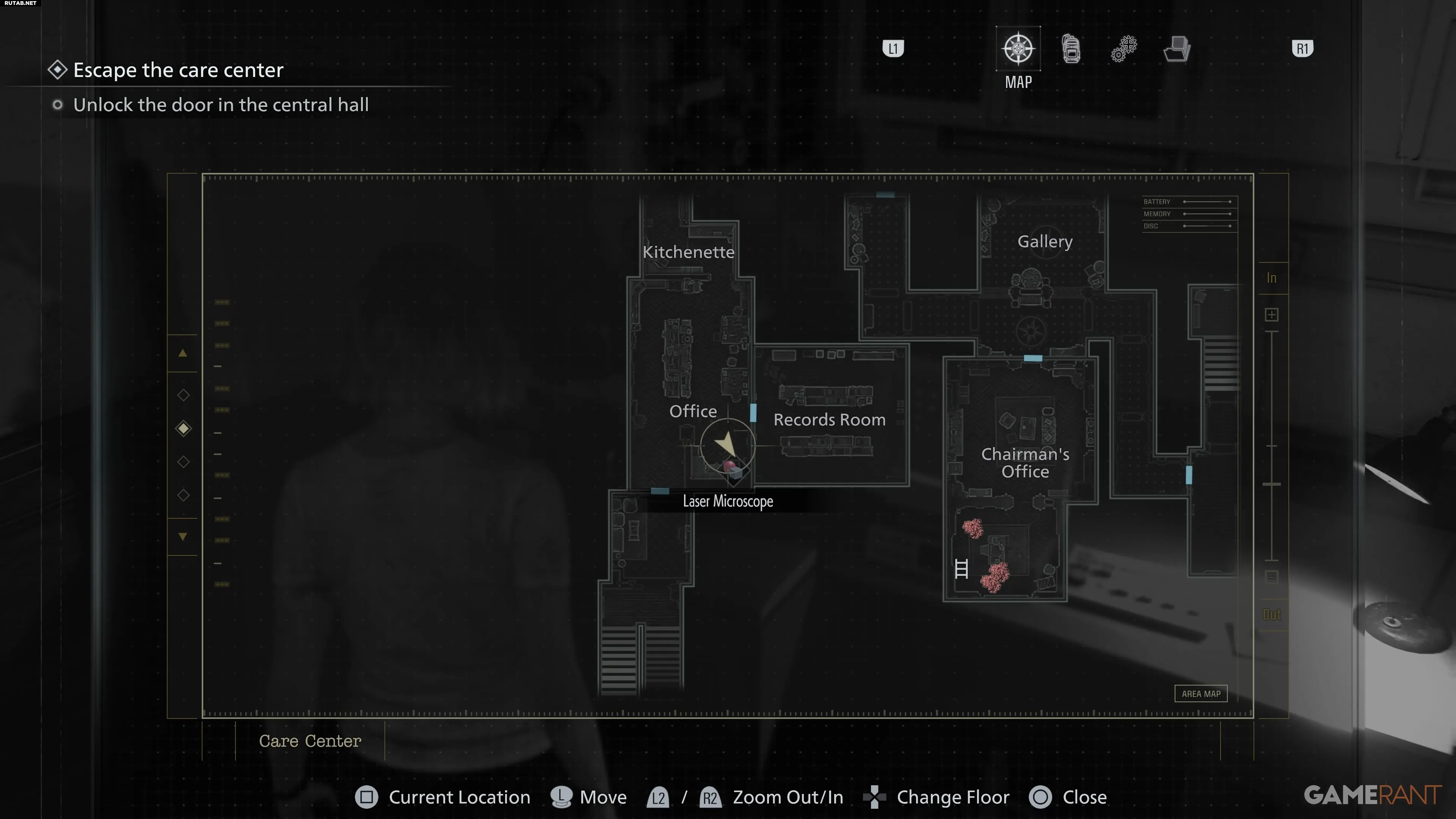С Отрубленной рукой вам нужно найти лазерный микроскоп. Он расположен в одном из двух мест: в Лаборатории анализа крови в Восточном крыле или в Кабинете на втором этаже Западного крыла.
