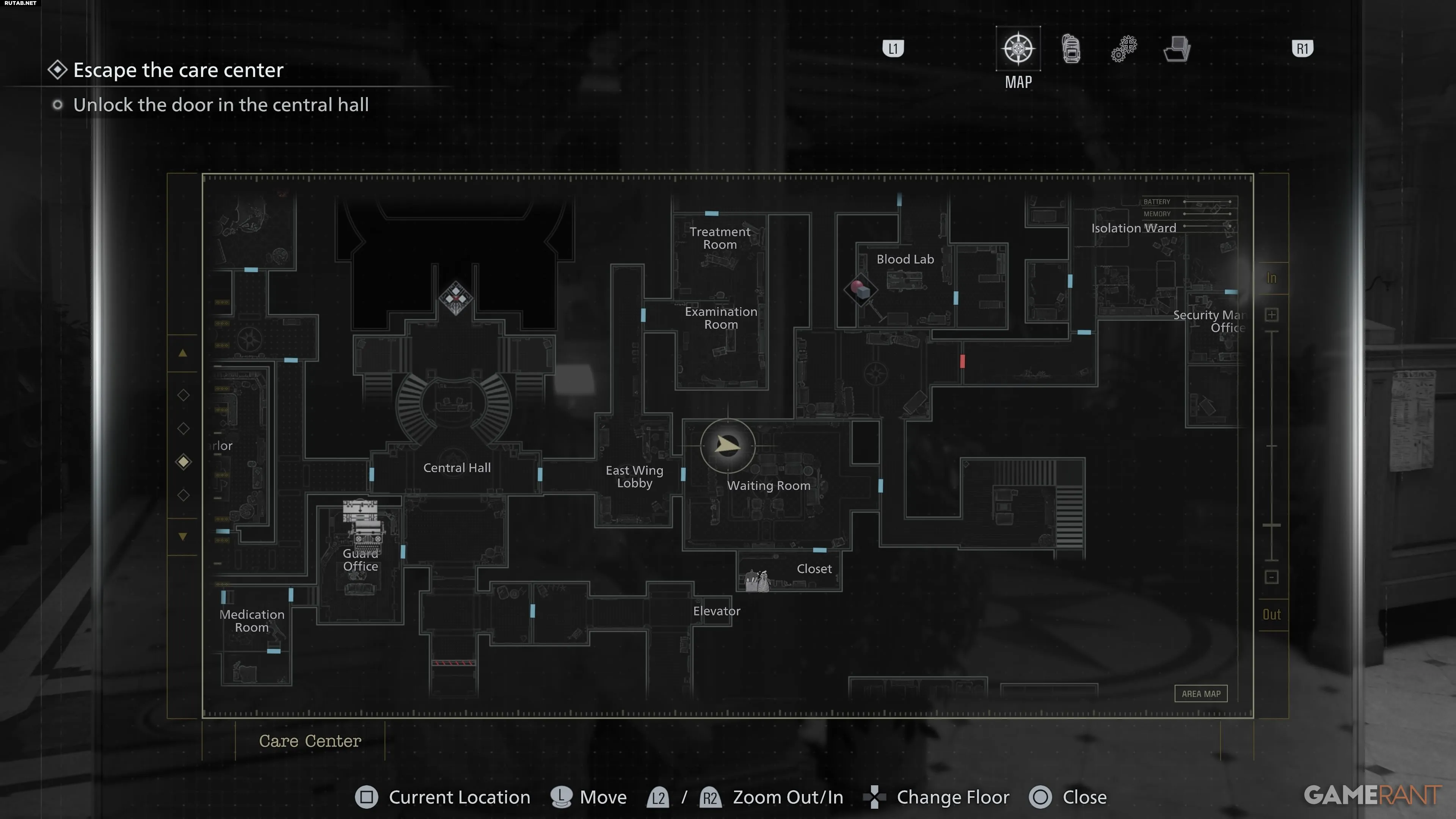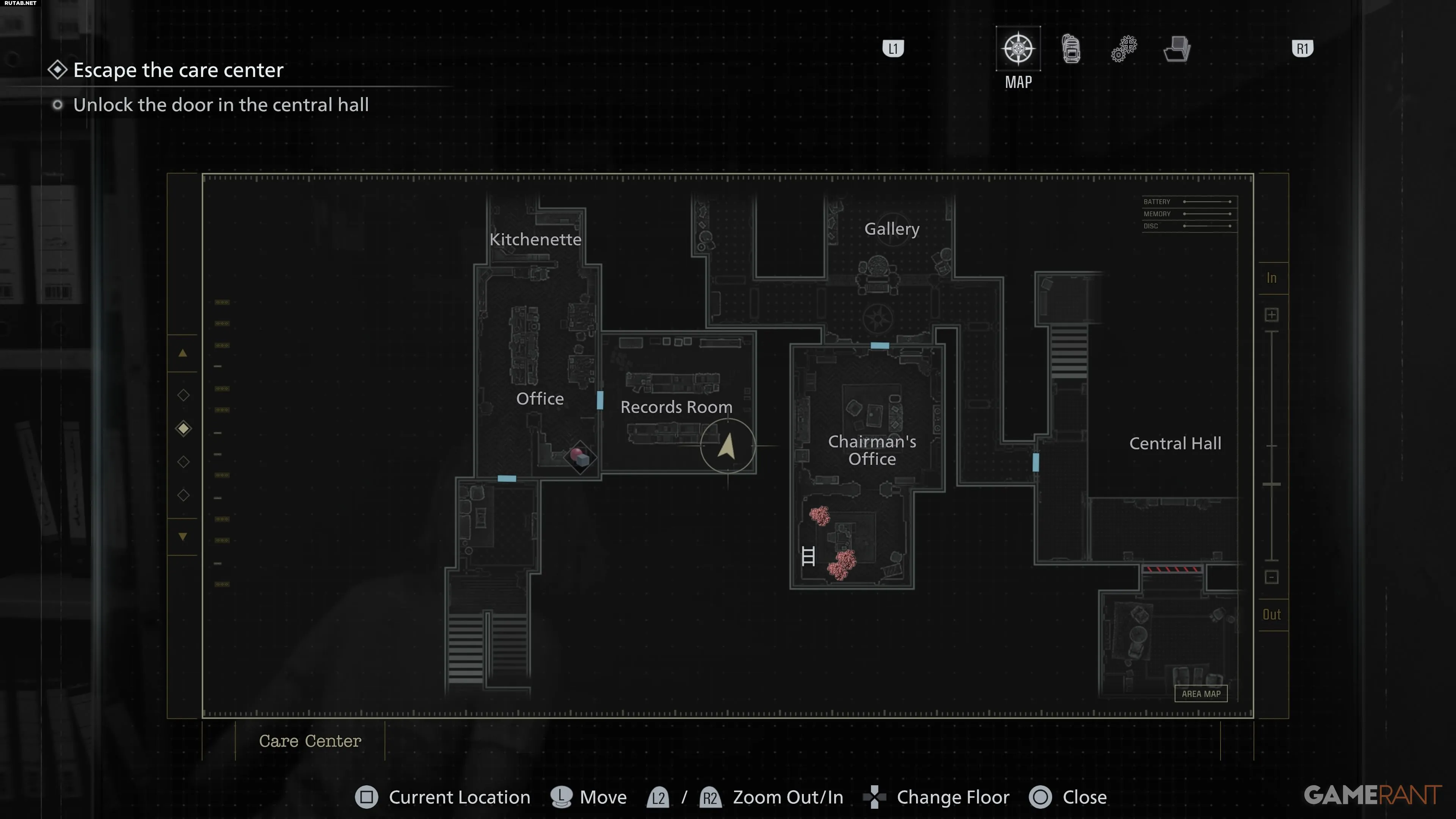 После получения браслета доступа 1 уровня идите в Западное крыло. Пройдите по коридору на запад до двери с охраной 1 уровня перед Кухней. Поднимитесь наверх, чтобы найти Офис и Архив.