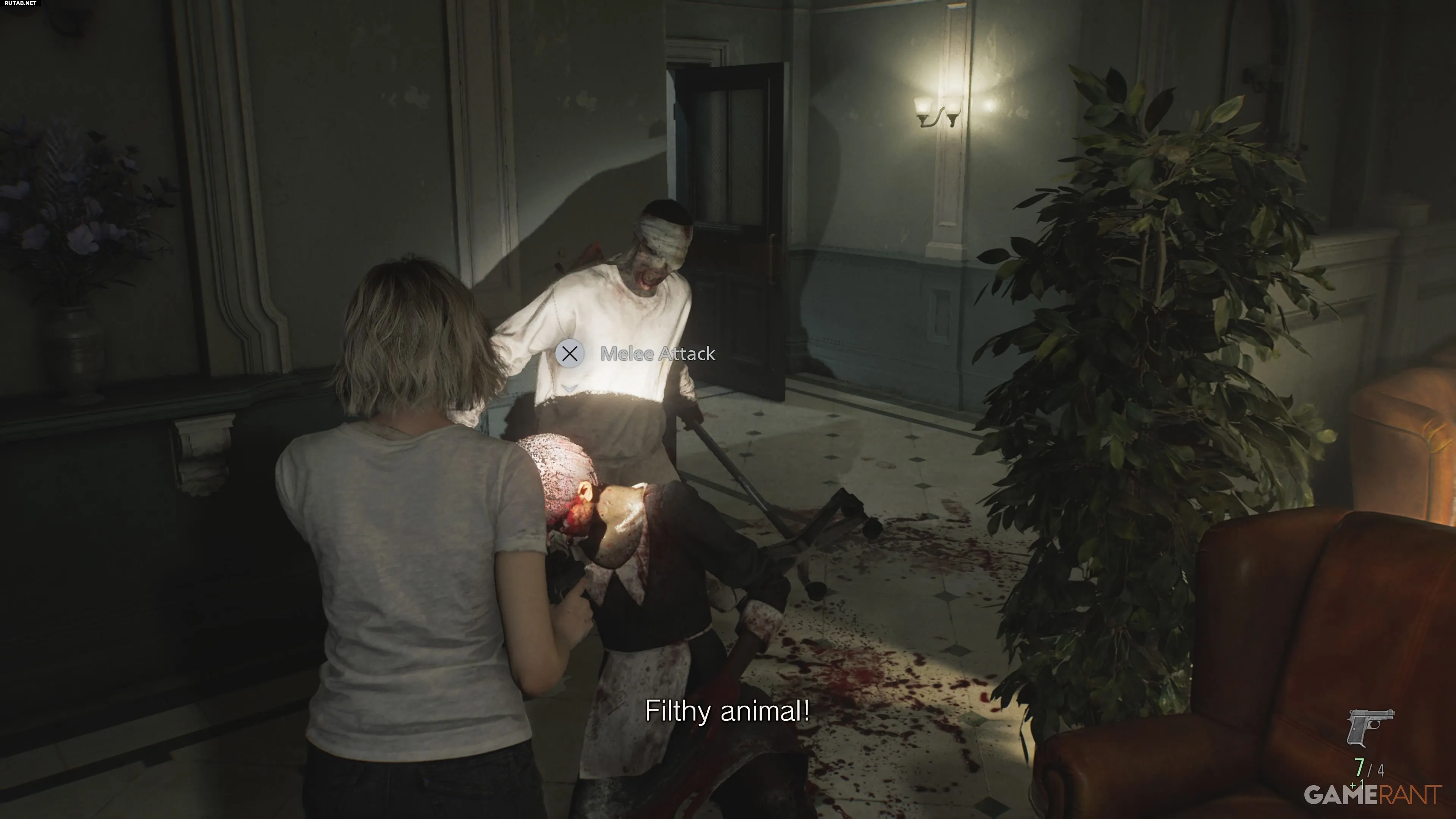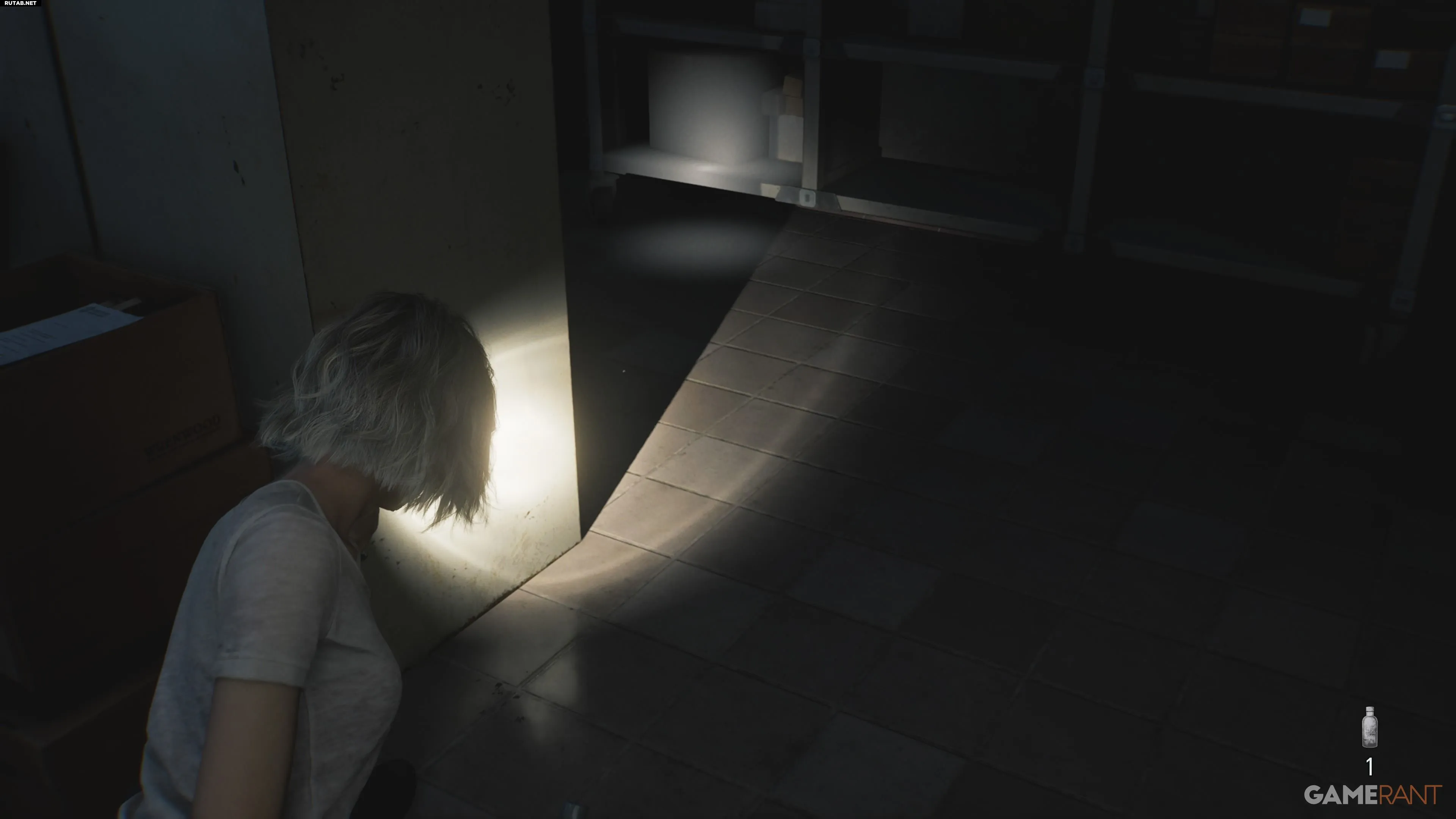 В этой же комнате есть зомби-горничная, моющая пол. Вы можете приманить ее к слепому зомби, привлекая внимание или бросив пустую бутылку в его сторону.