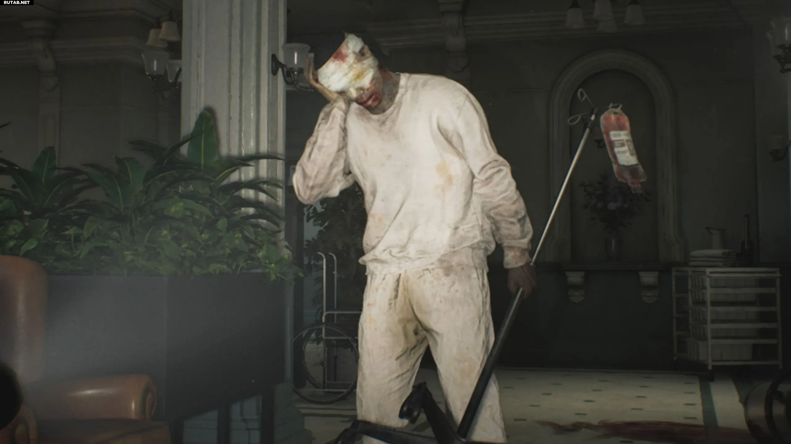В Медицинском центре отправляйтесь в Восточное крыло. В комнате ожидания вы найдете слепого зомби со стойкой для капельницы и повязкой на глазах.