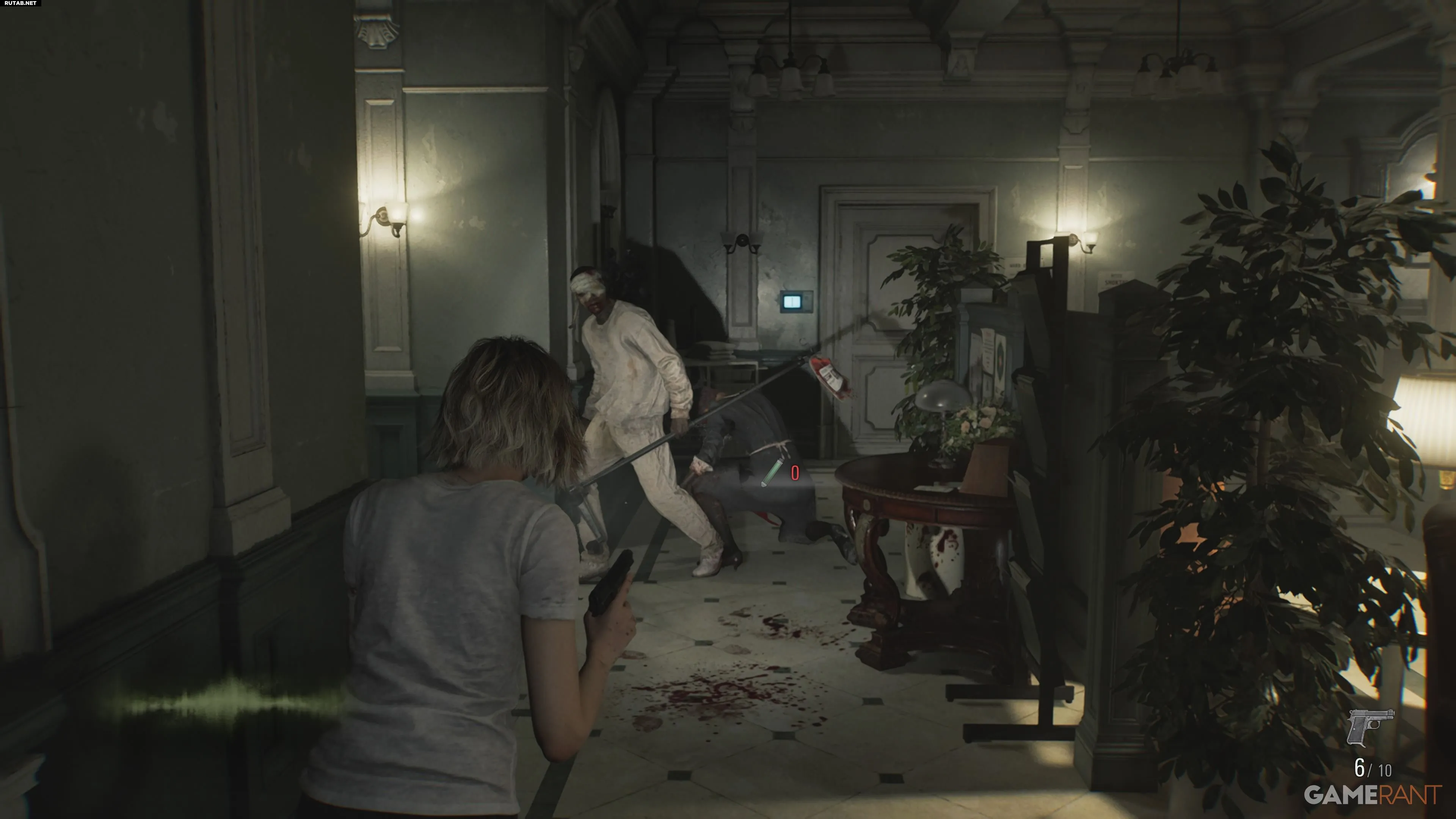 Если вы уже убили зомби-горничную, можно привести других зомби из коридора, ведущего наверх в Кабинет исследователя.