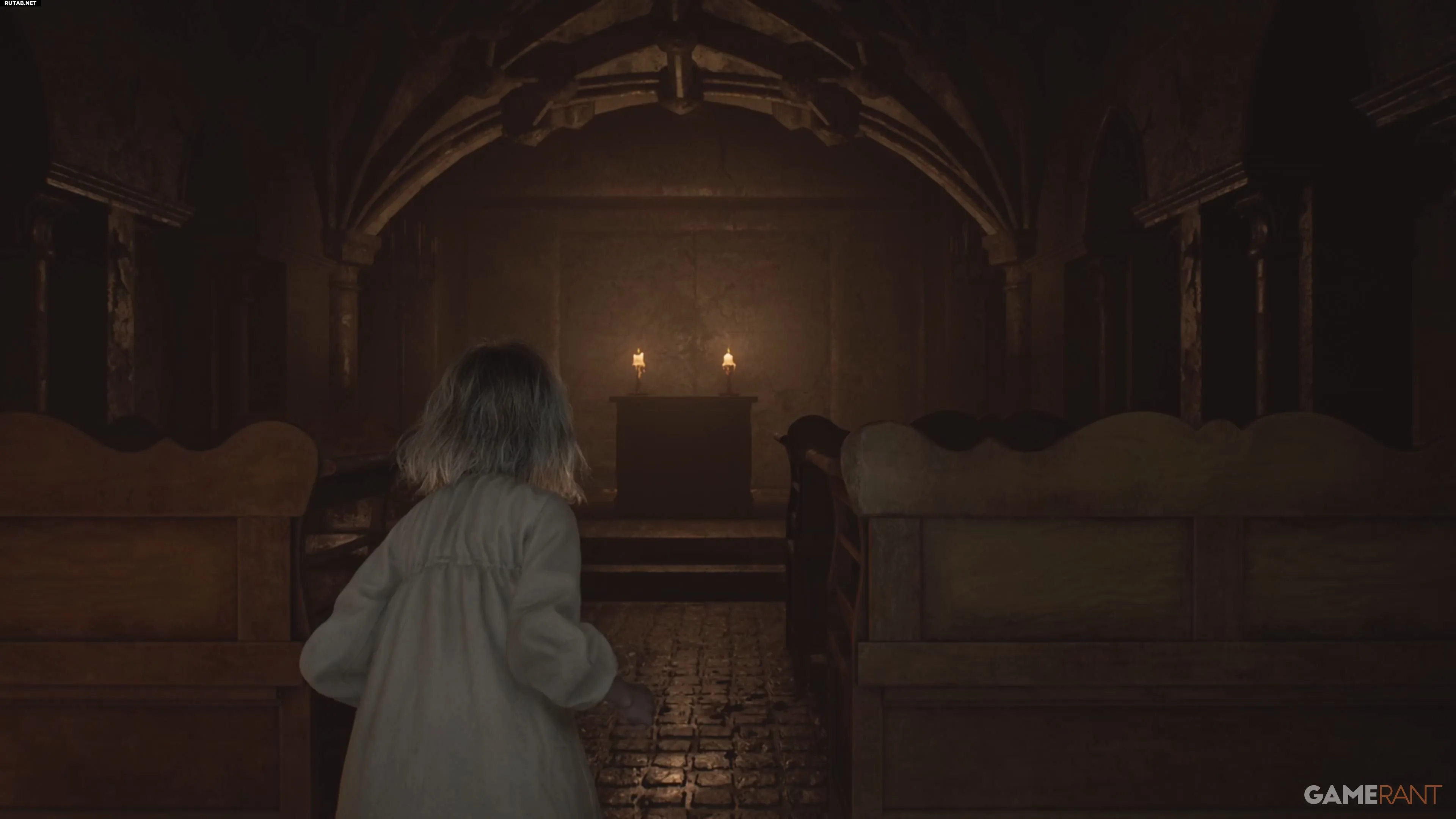 Дети почти найдут вас, но шум отвлечёт их. Когда они уйдут, подойдите к люку и спуститесь вниз. Следуйте по туннелям подвала за игрушечной пожарной машиной, чтобы добраться до Подземной часовни.