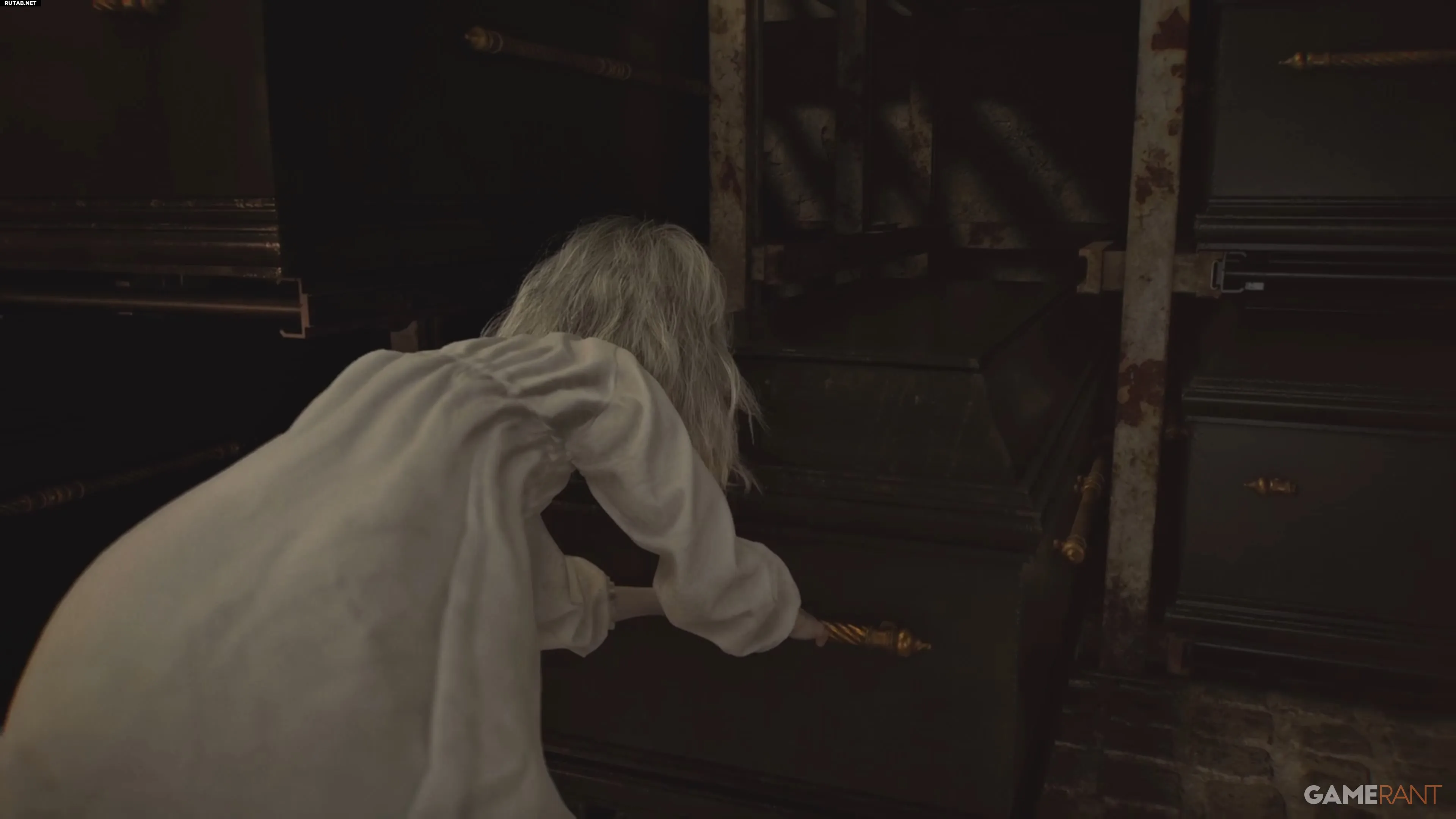 В часовне подойдите к алтарю, чтобы открыть потайную стену с лестницей. Напротив лестницы на стене найдите и дёрните рычаг. Он включит свет в Крипте и отопрёт дверь в комнату с гробами. Взаимодействуйте с первым гробом, чтобы получить файл «Бирка на палец».