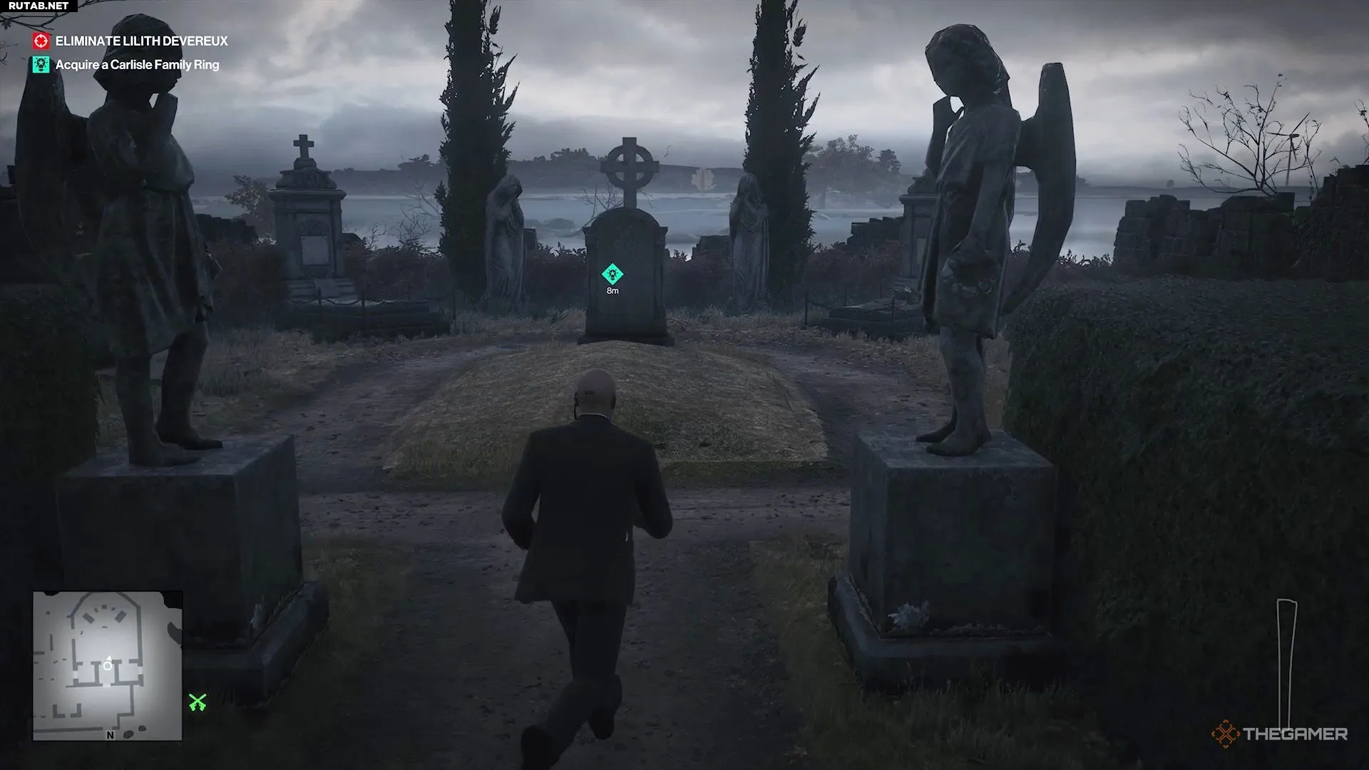 Пройдите между двумя охранниками и направляйтесь к кладбищу.