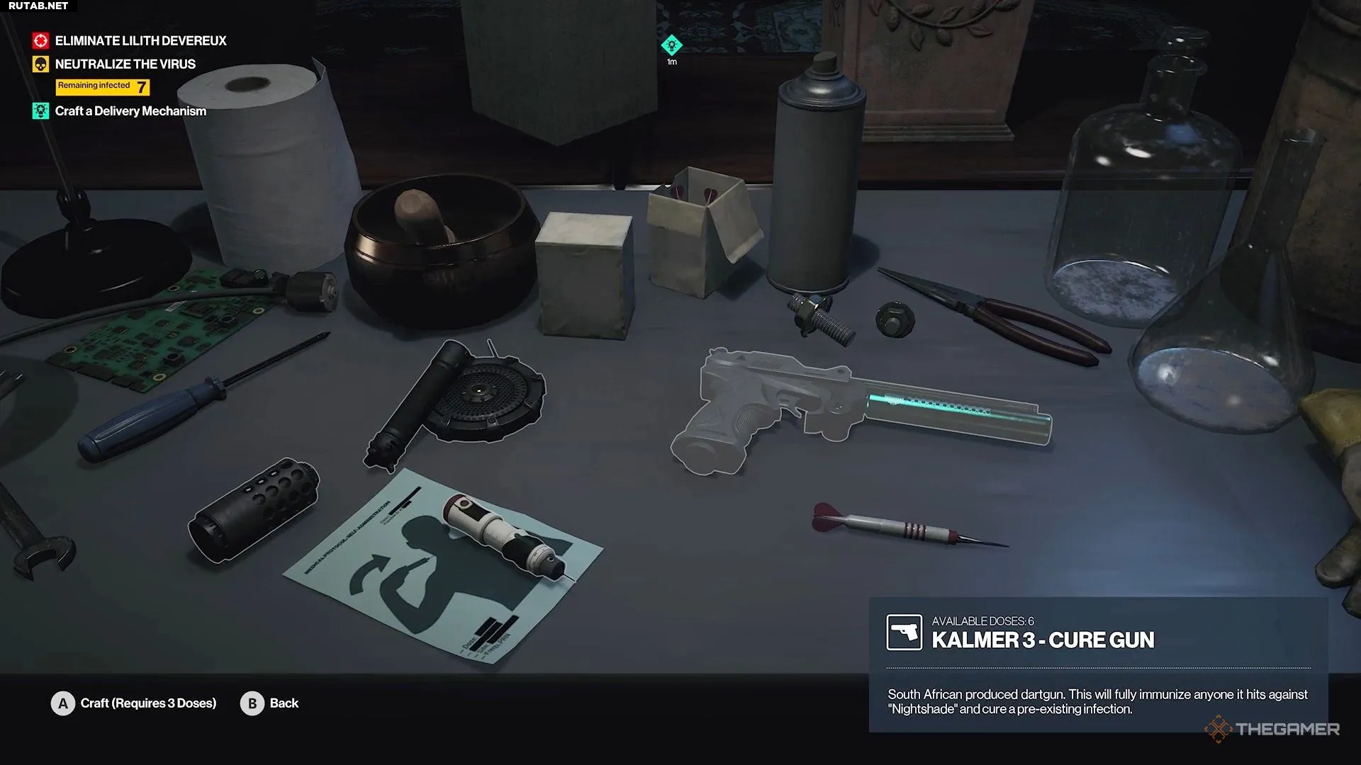 Подняв его, развернитесь, чтобы найти белый письменный стол с полезными предметами. Возьмите успокоительный пистолет «Калмер 3-Лекарство», инъекционное лекарство и зарядите оставшиеся дозы в дротики.