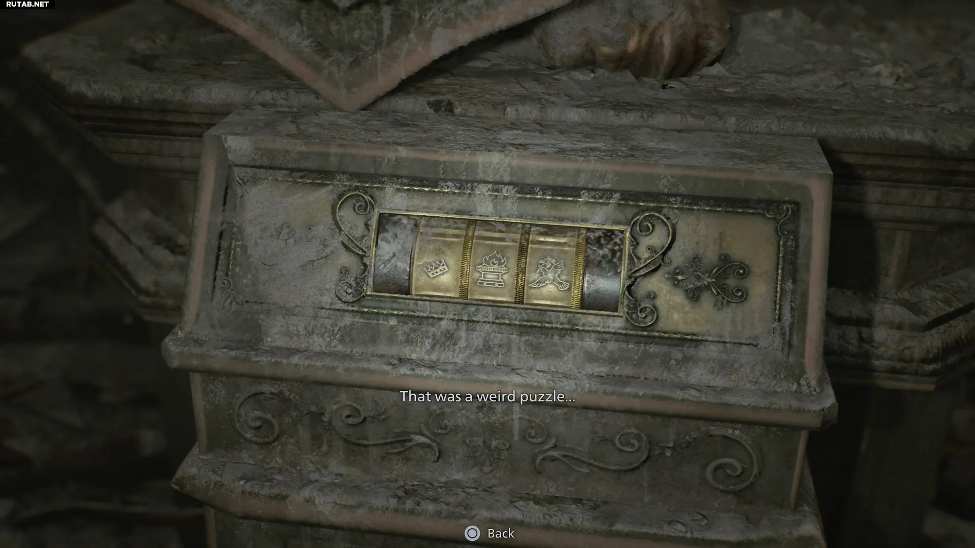 Неудивительно — особенно учитывая уже перечисленные пасхалки — что по всему R.P.D. встречаются отсылки к прошлому визиту Леона. Среди них — две оставшиеся статуи-медальоны от одной из головоломок в Resident Evil 2.