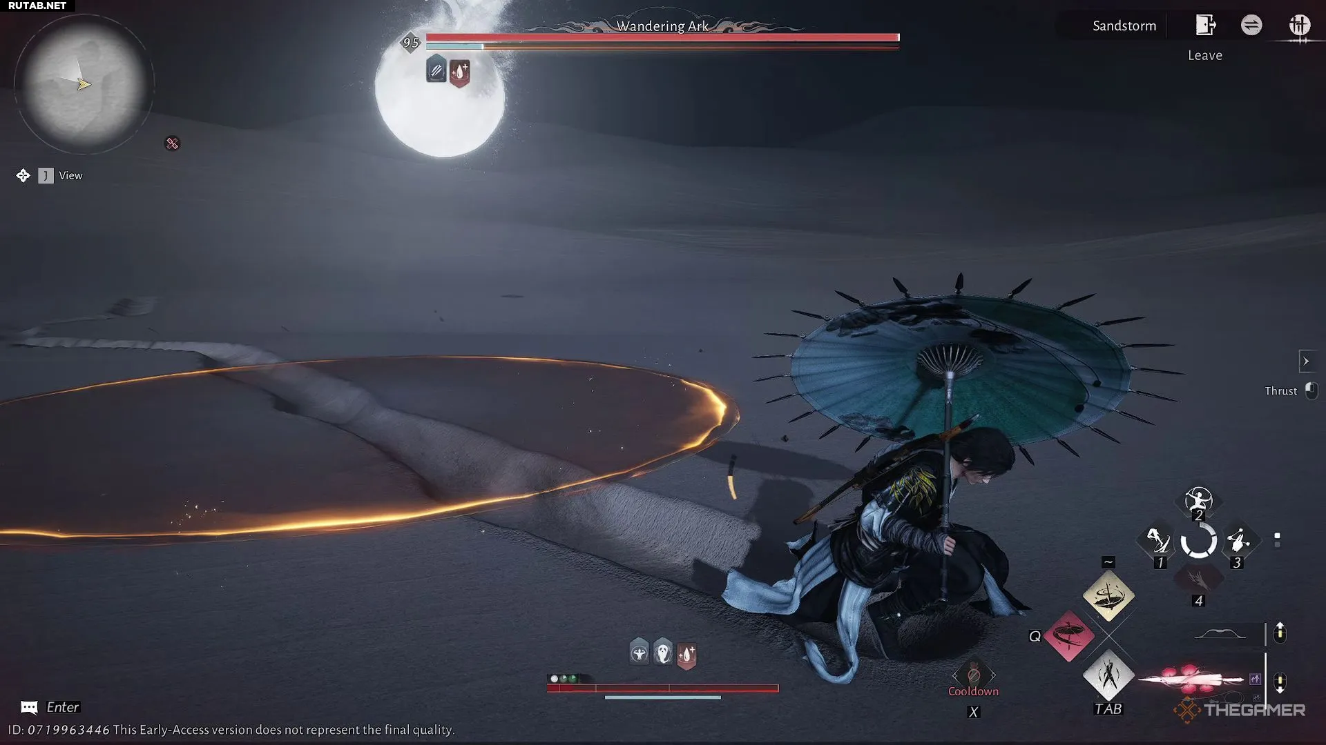 Сразу после того как снаряд упадет, вернитесь к нему и используйте способность «обратного хода», чтобы восстановить луну и отправить ее обратно в босса. Попадание сбивает Блуждающий Ковчег с неба, наносит значительный урон и обнажает его слабое место.