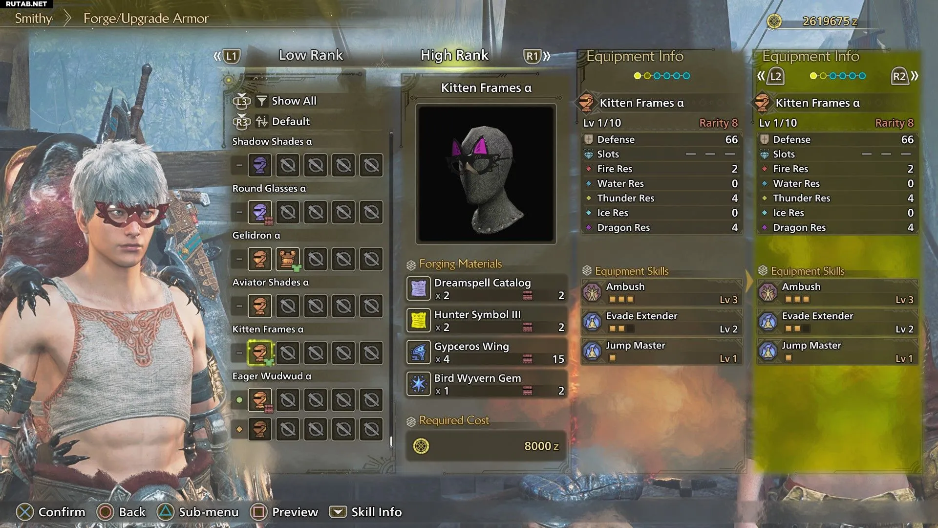 | Кошачьи очки | Засада 3, Увеличение уклонения 2, Мастер прыжка |