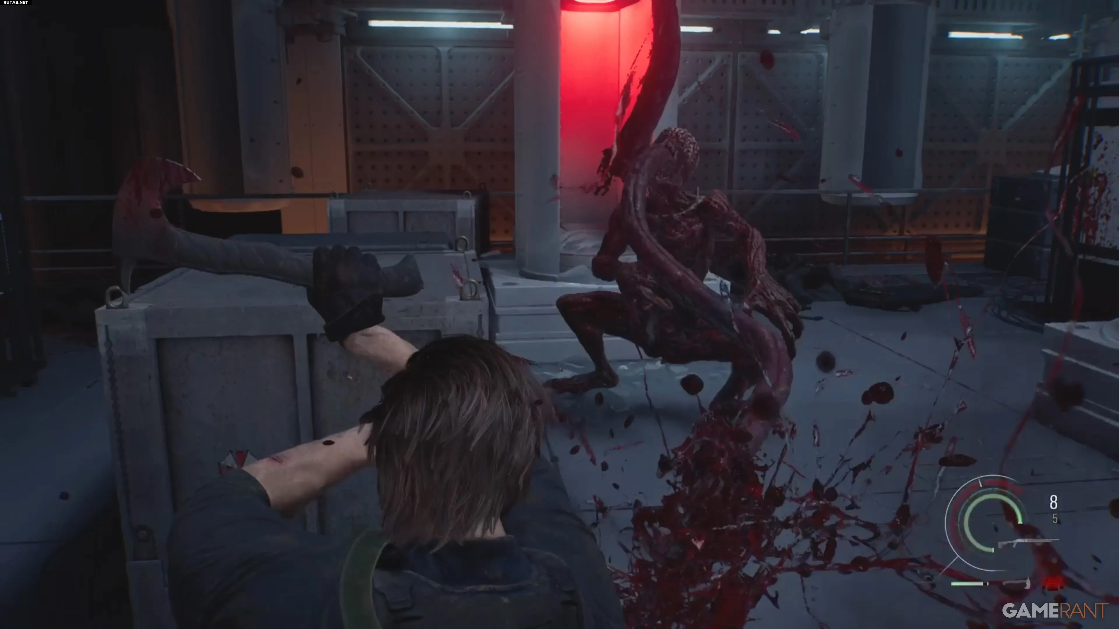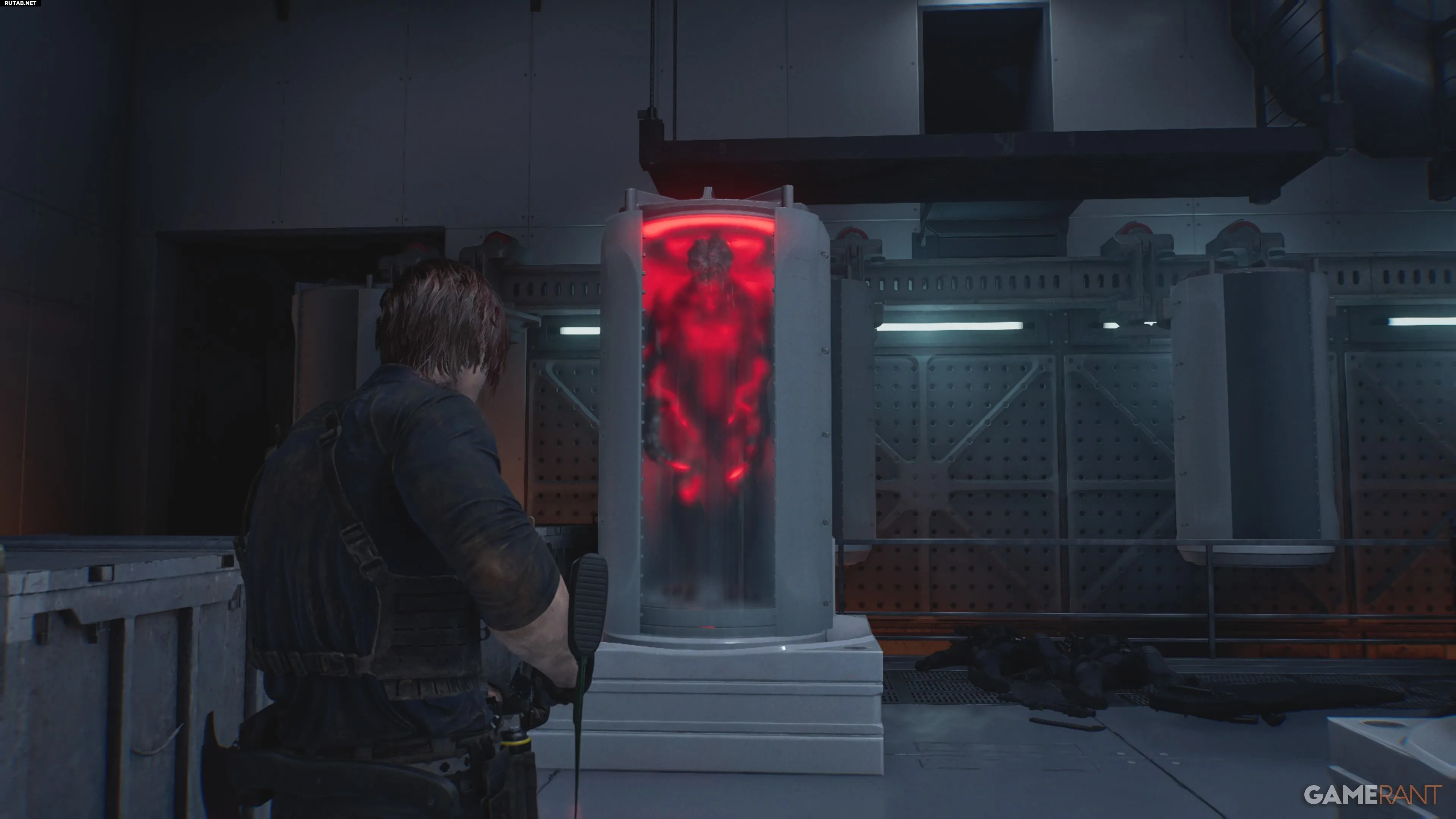 - В кладовой (глава «КОВЧЕГ», часть 1 Леона). Нужно выстрелить в биологический контейнер с ним.