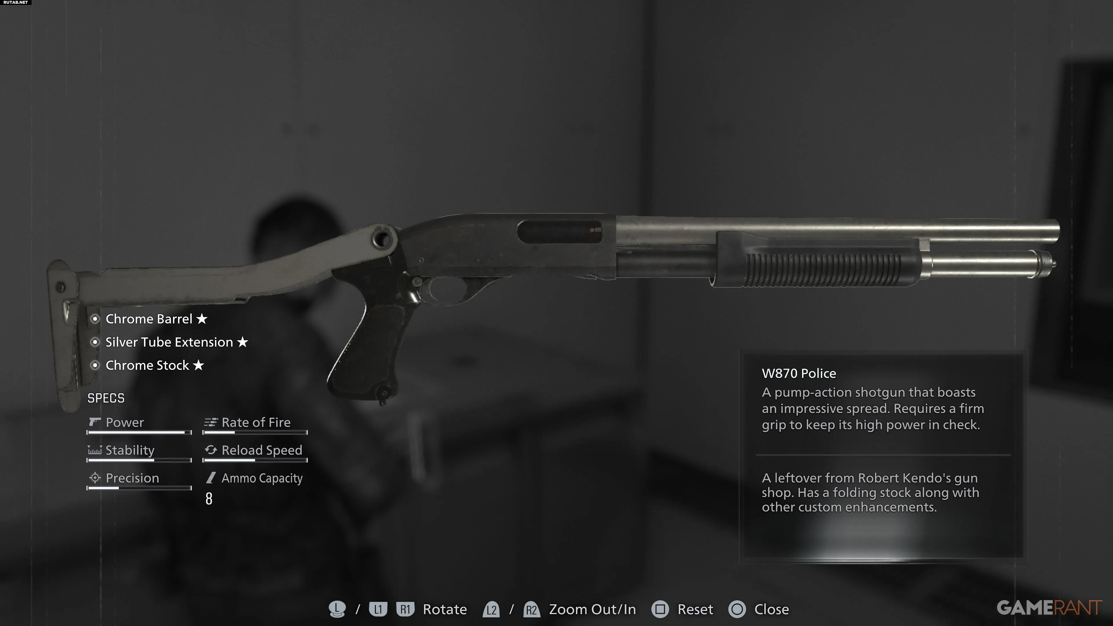 Дробовик W870 Police можно забрать в оружейном магазине Кендо, который находится в Центре Раккун-Сити, после посещения полицейского участка.